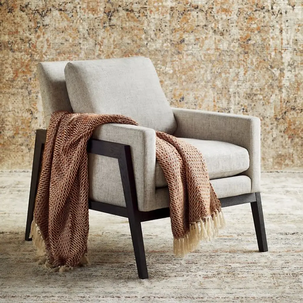 The Presidio Chair from Cyan Design outlines the body with neat angle changes designed for comfort and style. The dashing edge of the chair’s silhouette makes a statement in the modern or contemporary space. The chair sets a comfortable tone with the familiar natural quality of its solid wood construction. The shell inside leans one’s back gently and props up the arms. It pairs plump foam with elegant upholstery. This shell creates a restful experience while promoting a formal seating posture.
