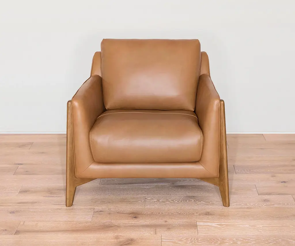 Inspired by modern European design, the leather Prue Chair combines an airy, Scandinavian silhouette with indulgently plush cushions for the ultimate seating experience. Natural characteristics in the leather may change over time, making each piece one-of-a-kind.