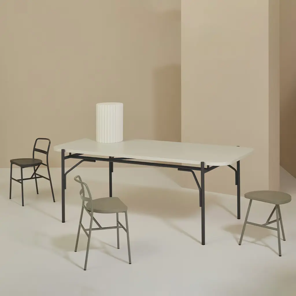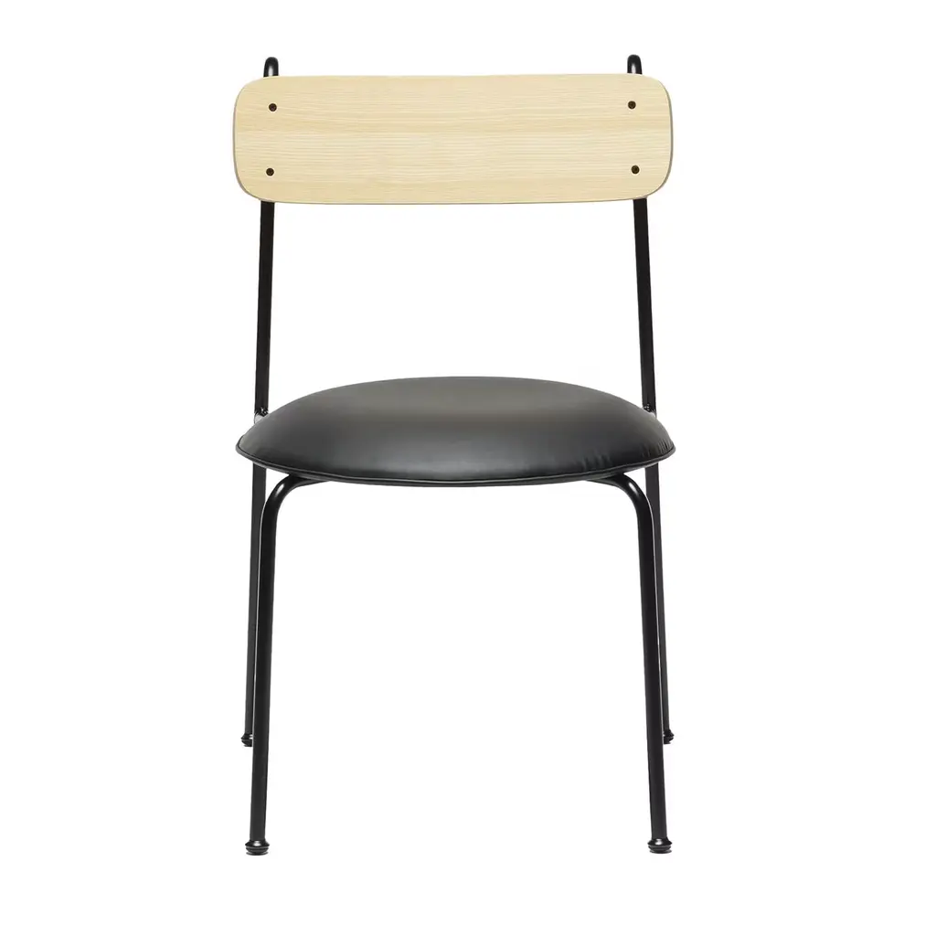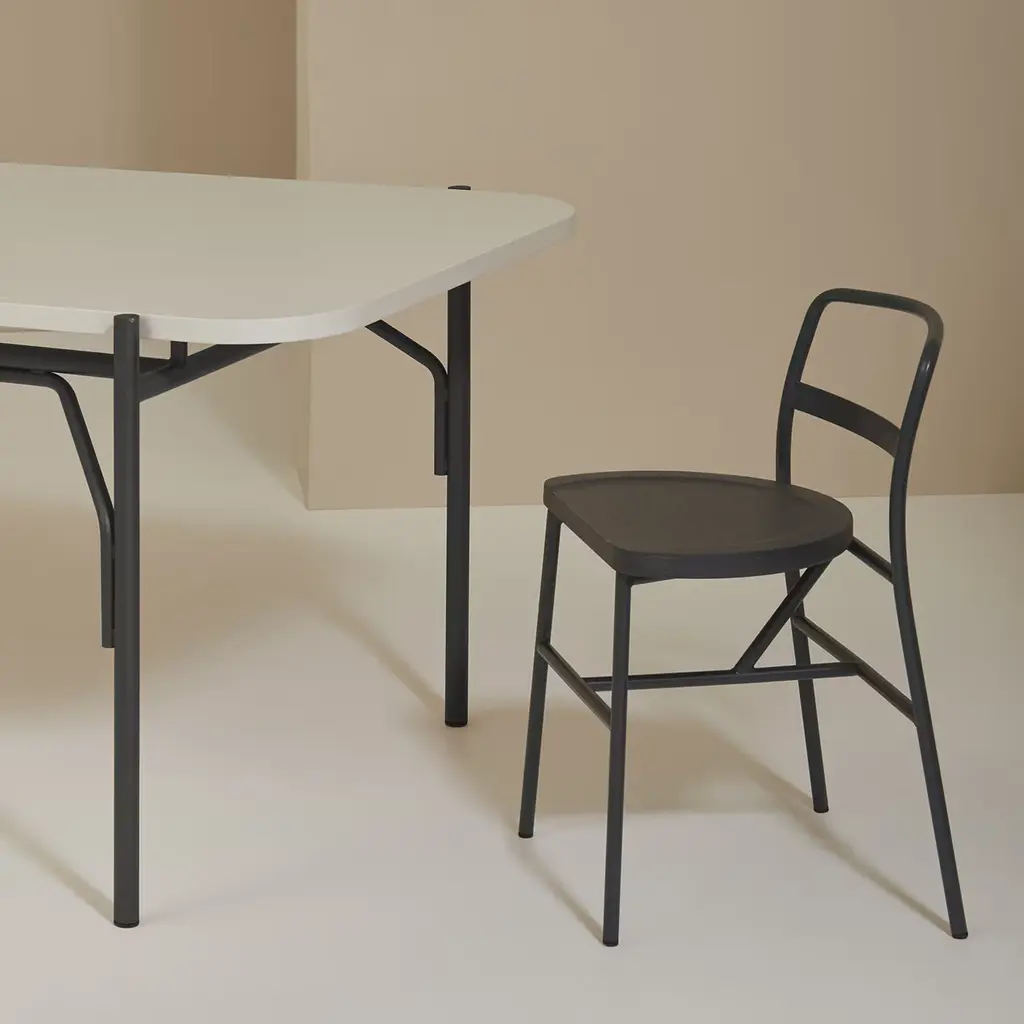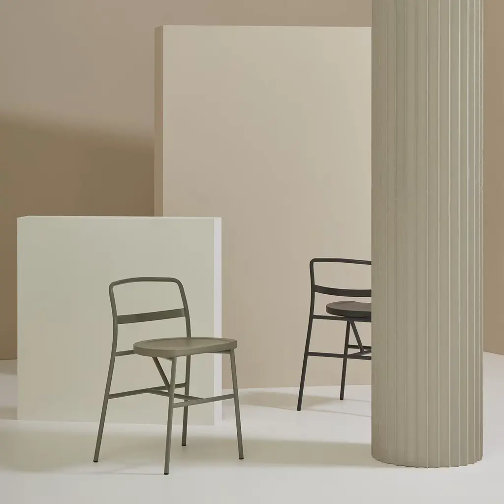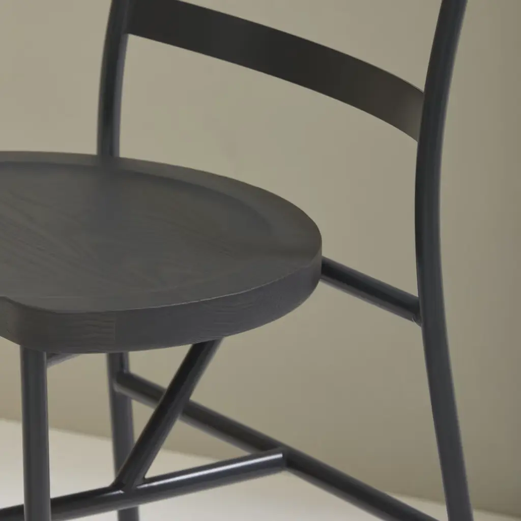 The reliability of tubular metal structures invited Emilio Nanni to design this modern chair for the Puccio series. Featuring a slight ergonomic cut, the wide ash seat shares the same deep anthracite-gray tone with the metal frame, a monochromatic choice that further stresses the design's urban character. A more delicate cement-gray variant is available in the Artemest catalog.