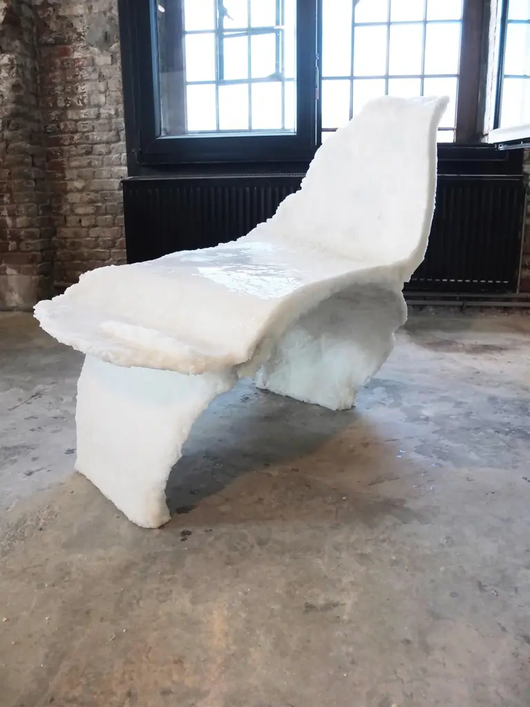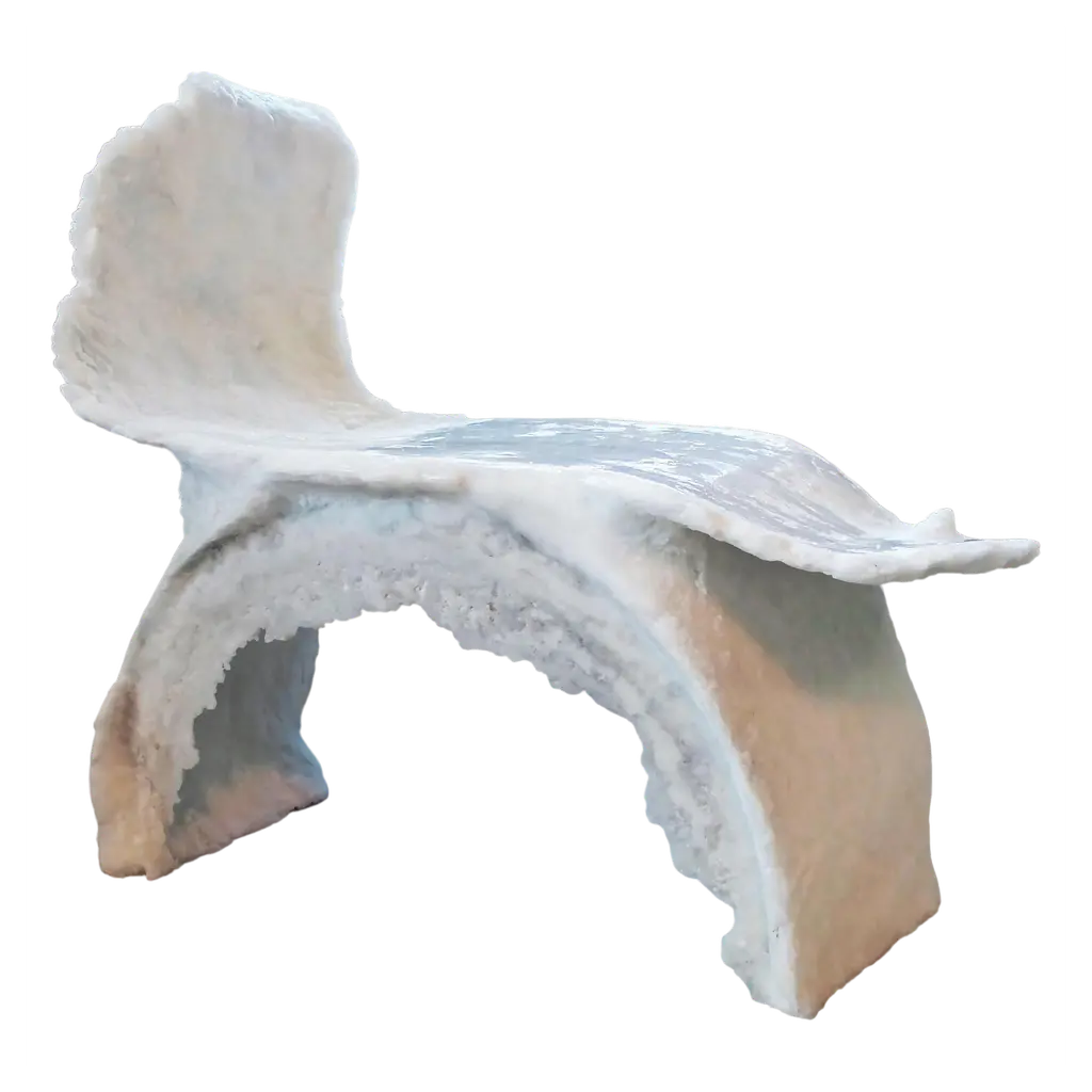 Pyche's chair by Roxane Lahidji.Dimensions: D 100 x W 57 x H 90 cm.Materials: Marbled salt.Roxane Lahidji is a social designer specializing in ecological material developments and applications. Her research focuses on achieving luxurious-looking objects and surfaces from low costs and raw resources.In this sense, she seeks to redefine the meaning of the objects she makes by balancing local and renewable resources, environmentally friendly production processes, and essential human values. With the deep concern of conciliating production and sustainability, her design uses disregarded or cheap materials brought to a new life, while twisting low-tech methods and traditional crafts techniques she describes her practice as an alchemical journey by developing her own transforming and molding methods.Roxane Lahidji was born in Paris in 1992 and grew up in the French capital before studying illustration and product design in Strasbourg (HEAR). After graduating from the Social Design department of Design Academy Eindhoven in 2017, Roxane Lahidji developed her project ‘’Marbled salts’’ and was awarded among the 100 best French international designers by FD100 price of the VIA and won the 2019 Bolia award.
