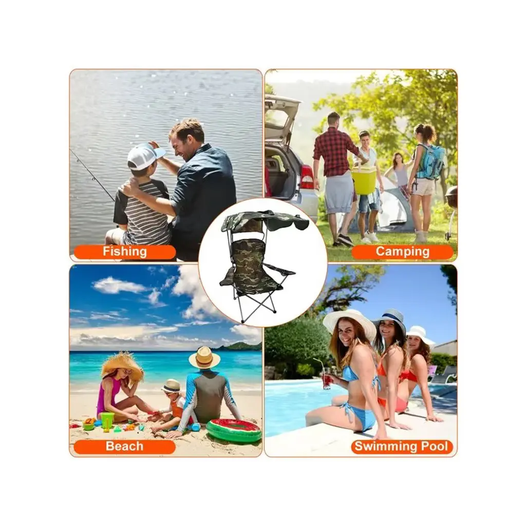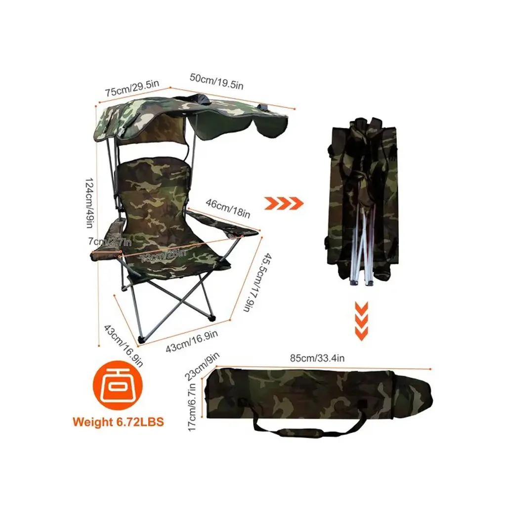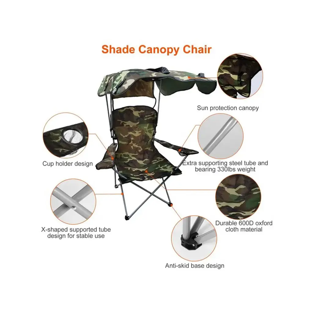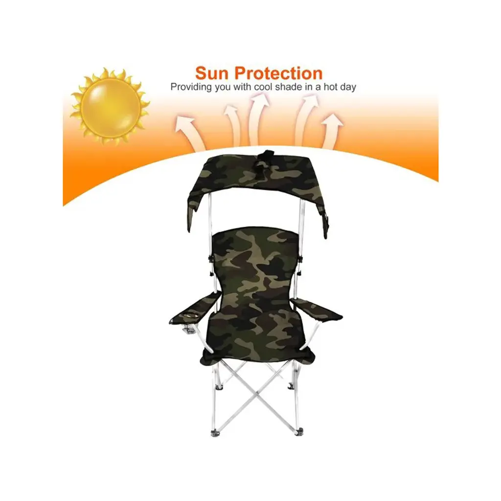 Racxily Foldable Beach Canopy Chair Sun Protection Camping Lawn Canopy Chair 330lbs Load Folding Seat, Camouflage