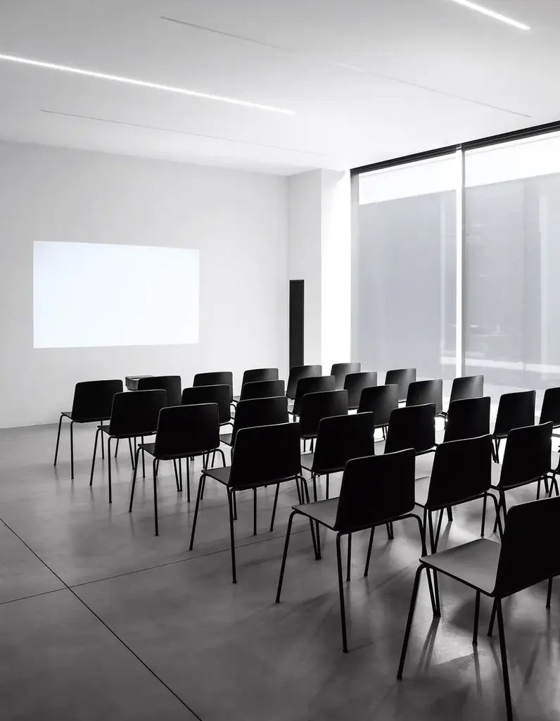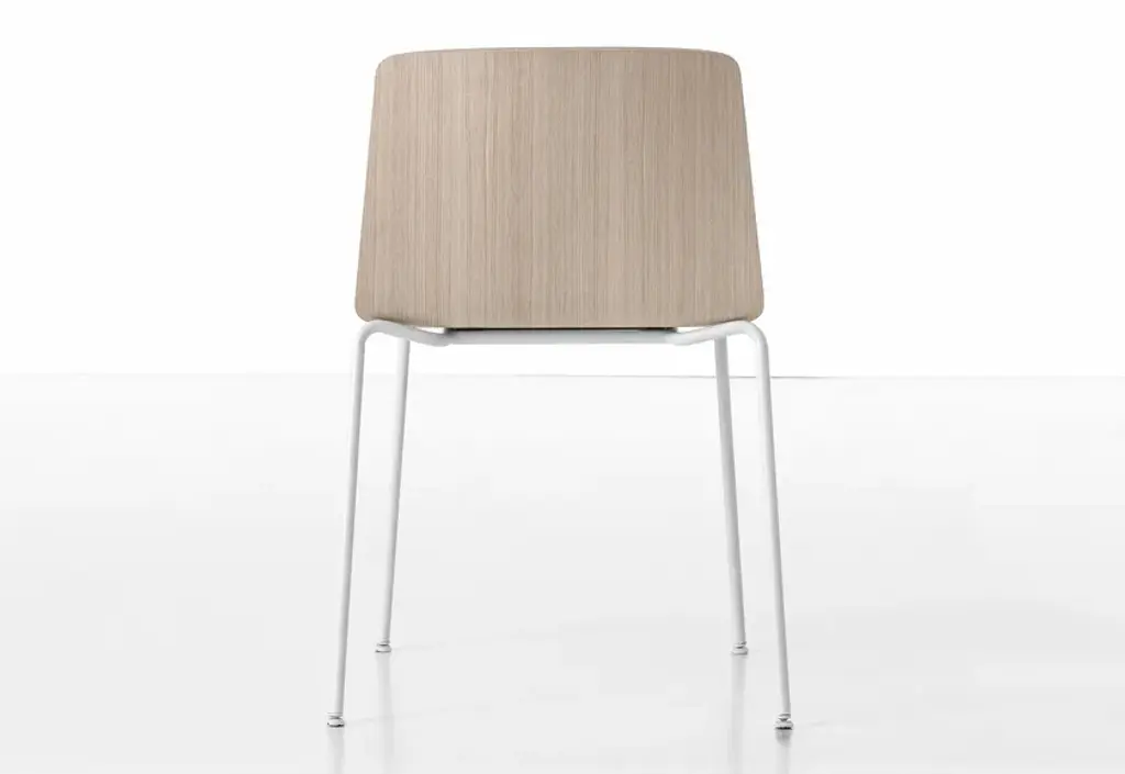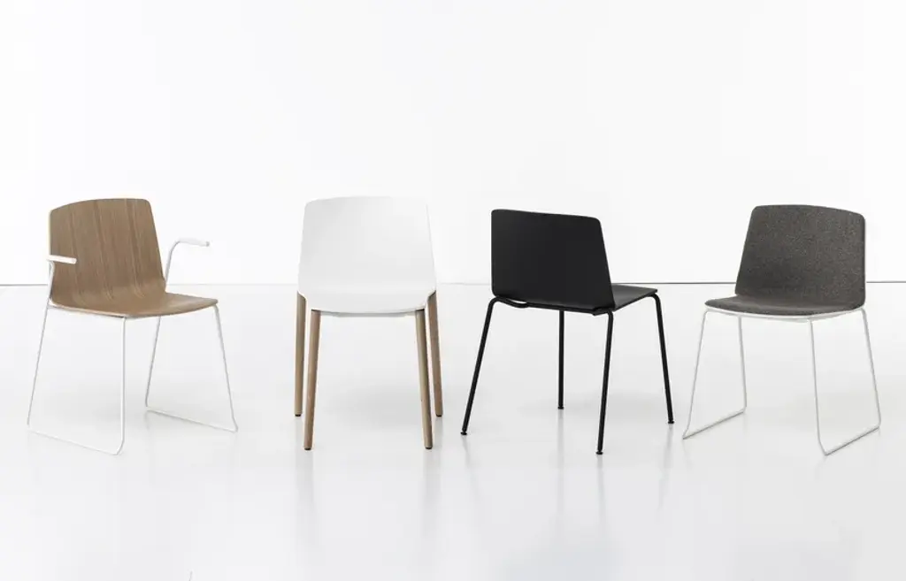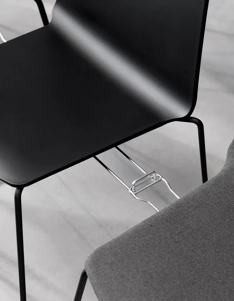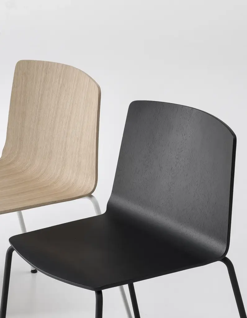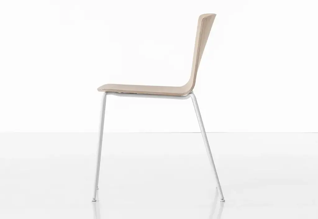 Rama is a stackable chair with a distinct and essential style, with a curved plywood structure or, alternatively, in injection-moulded reinforced polypropylene. The frame is available in many versions: with solid wood legs, also demonstrating high-quality craftsmanship, with four legs, or on a tubular metal slide frame with or without armrests. In addition, two new stools are available, also stackable, in two different heights. The structure is also available in a padded version, upholstered either entirely or at the front in a choice of high-quality fabrics and leather, allowing many colour combinations to be created with the frames. On request, Rama can be fitted with a water outlet hole and complemented with a removable Lips cushion for extra comfort and further colour options.