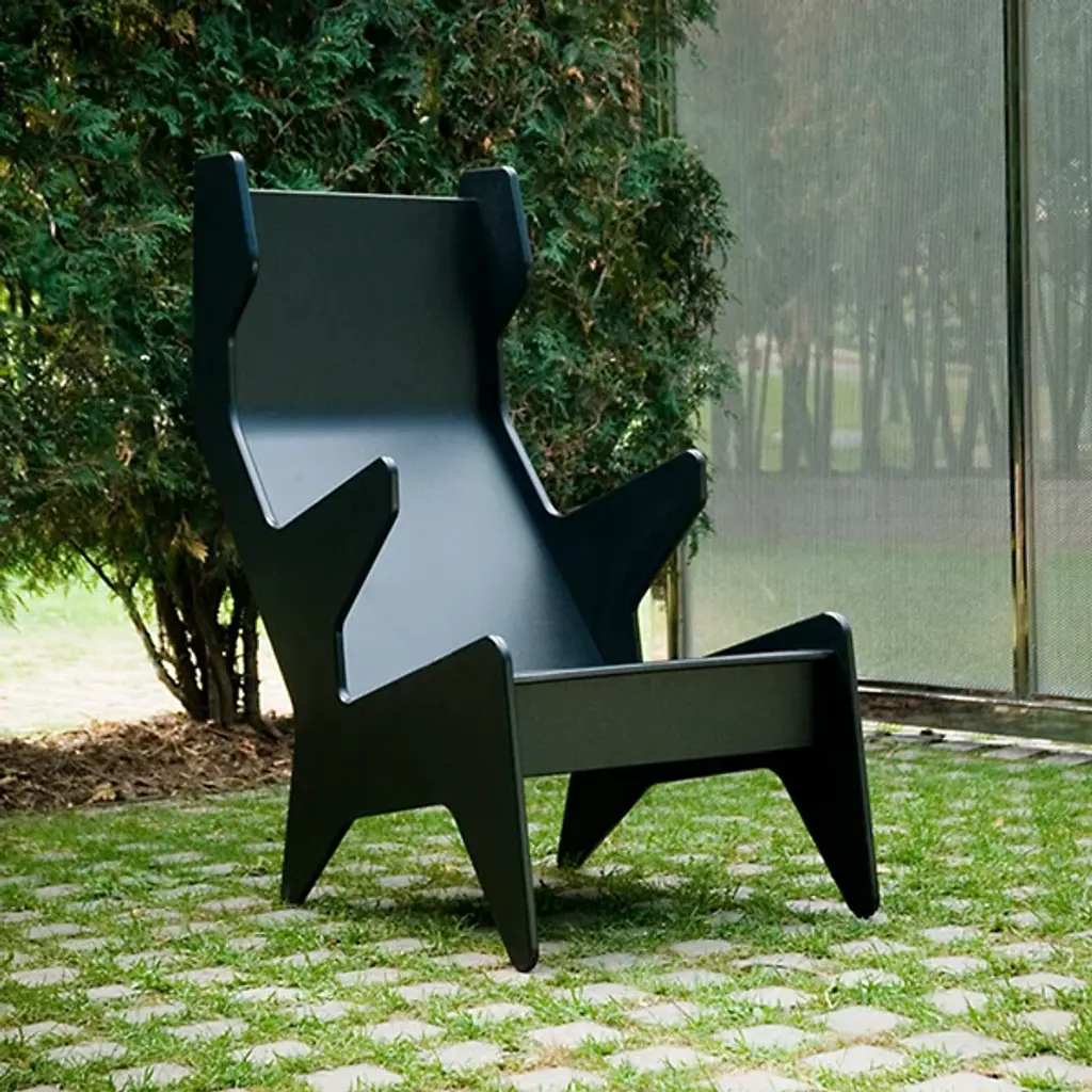 In 1943, Ralph Rapson originally conceived his Rapson Outdoor Cave Chair as plywood with a cushion, inspired by his architectural design for the earth-excavated Cave House. Neither project was built. But today, that over-sized, futuristic, comfortable and fun chair is reimagined entirely in bright and durable recycled milk jugs and High-density Polyethylene (HDPE) - that's the Loll Designs Rapson Cave Chair.