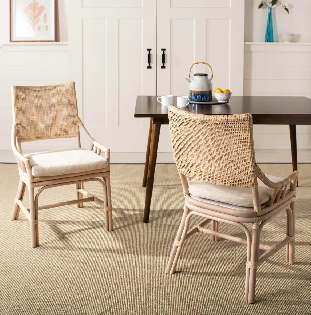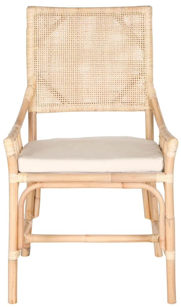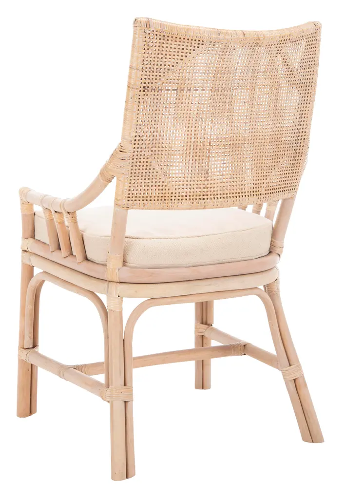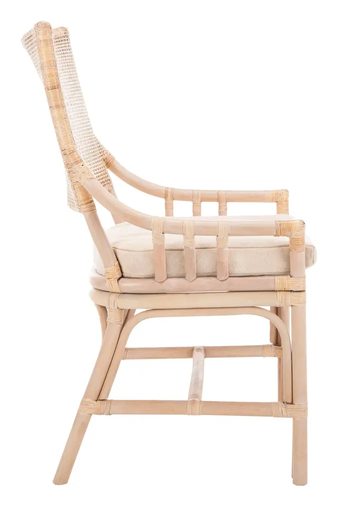 Global explorer. Travel has always been at the heart of the modern lifestyle, and thearmchair brings instant international flair to the table. This design classic is crafted with fine rattan, rawhide lacing and a ample white cotton cushion. To prevent overall soiling, frequent vacuum light brushing is recommended. Cushions and pillows should be turned on a weekly basis. Down-filled cushions should be brushed rather than vacuumed. Spot clean, using a mild water-free solvent or dry cleaning product. Only a professional cleaner should undertake a complete overall cleaning. The use of steam or water-based cleaners may cause excessive shrinking or staining.