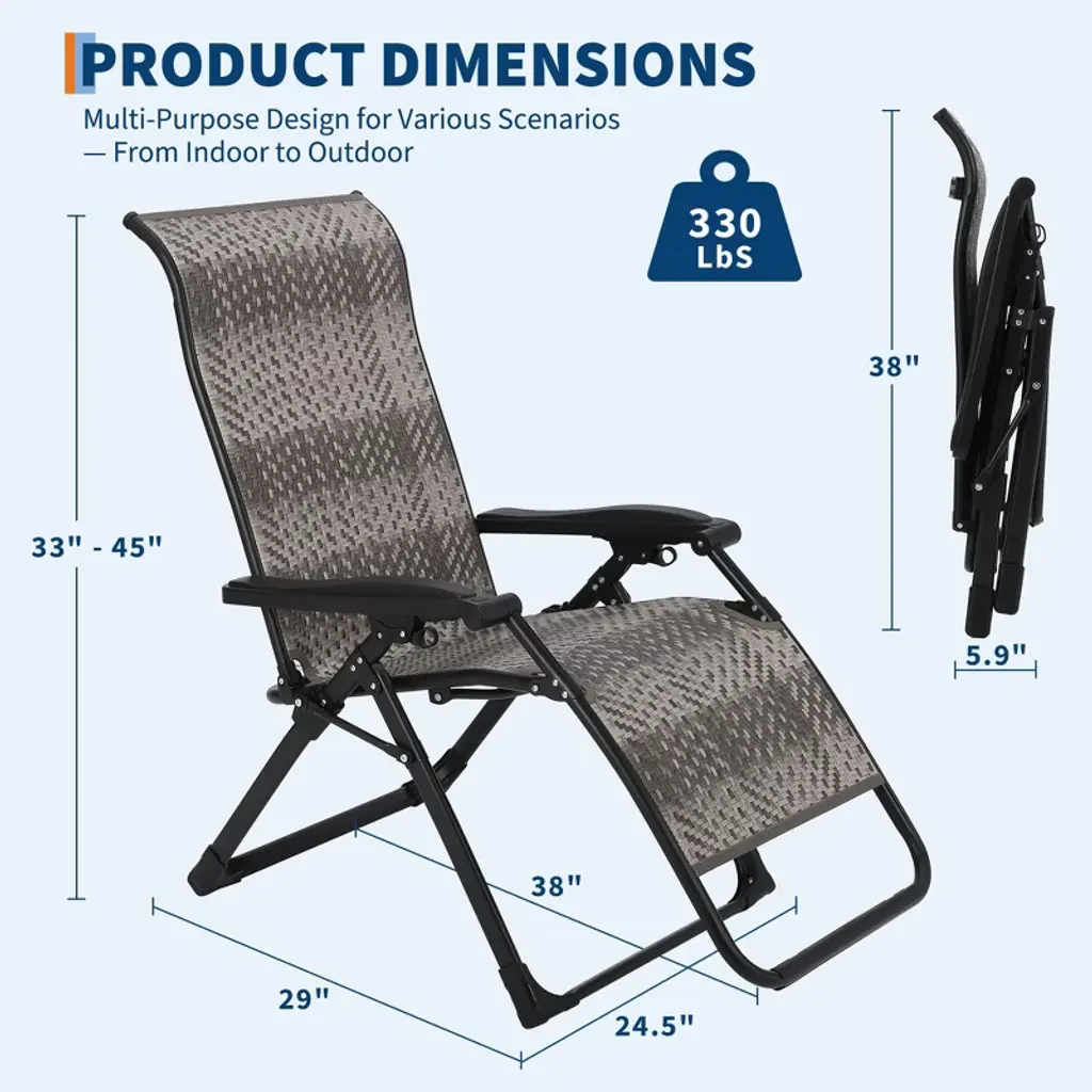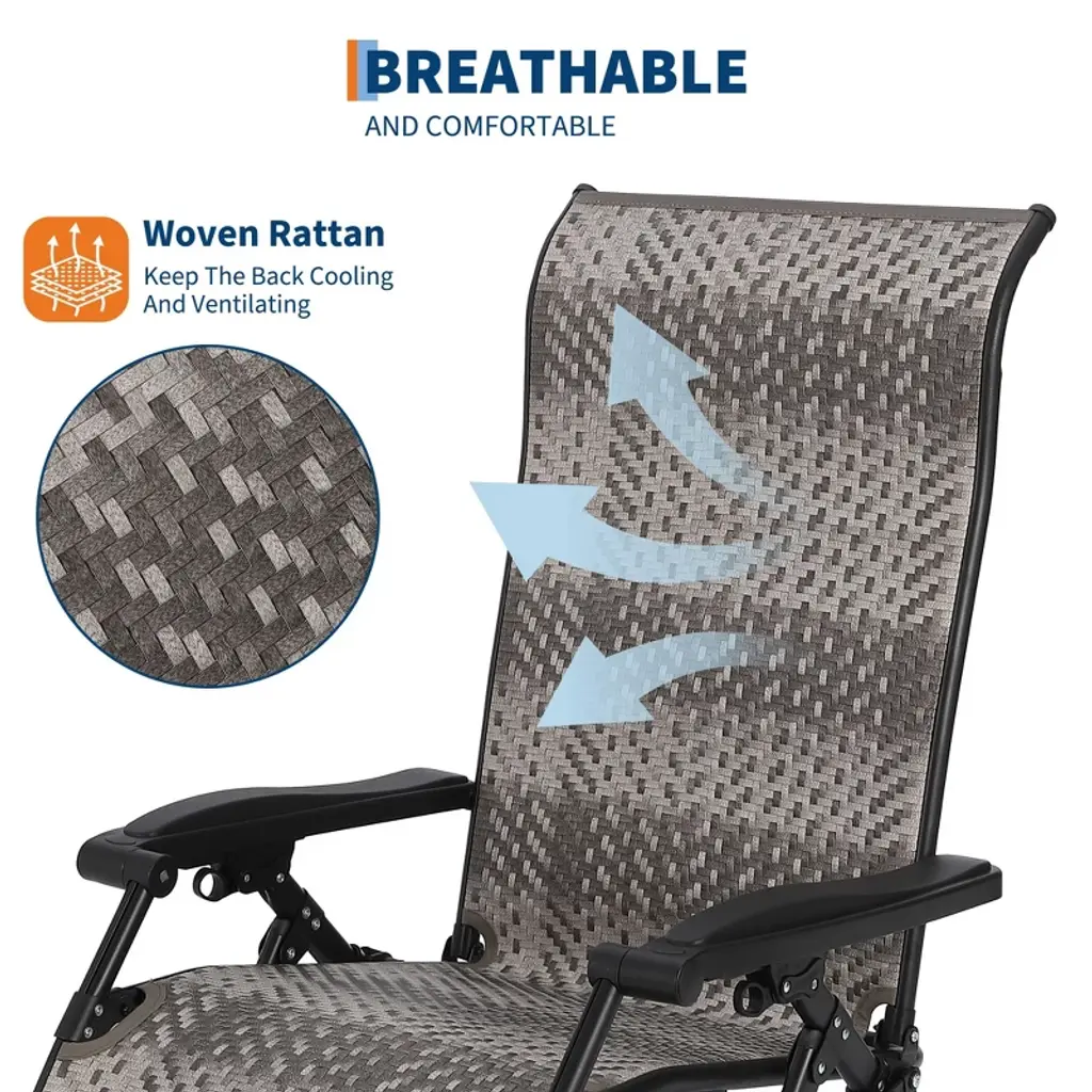 Rattan Foldable Lounge Chair, Outdoor Patio Adjustable Chair With Widened Armrest & Locking System, Portable Outdoor Recliners ,2 Pack