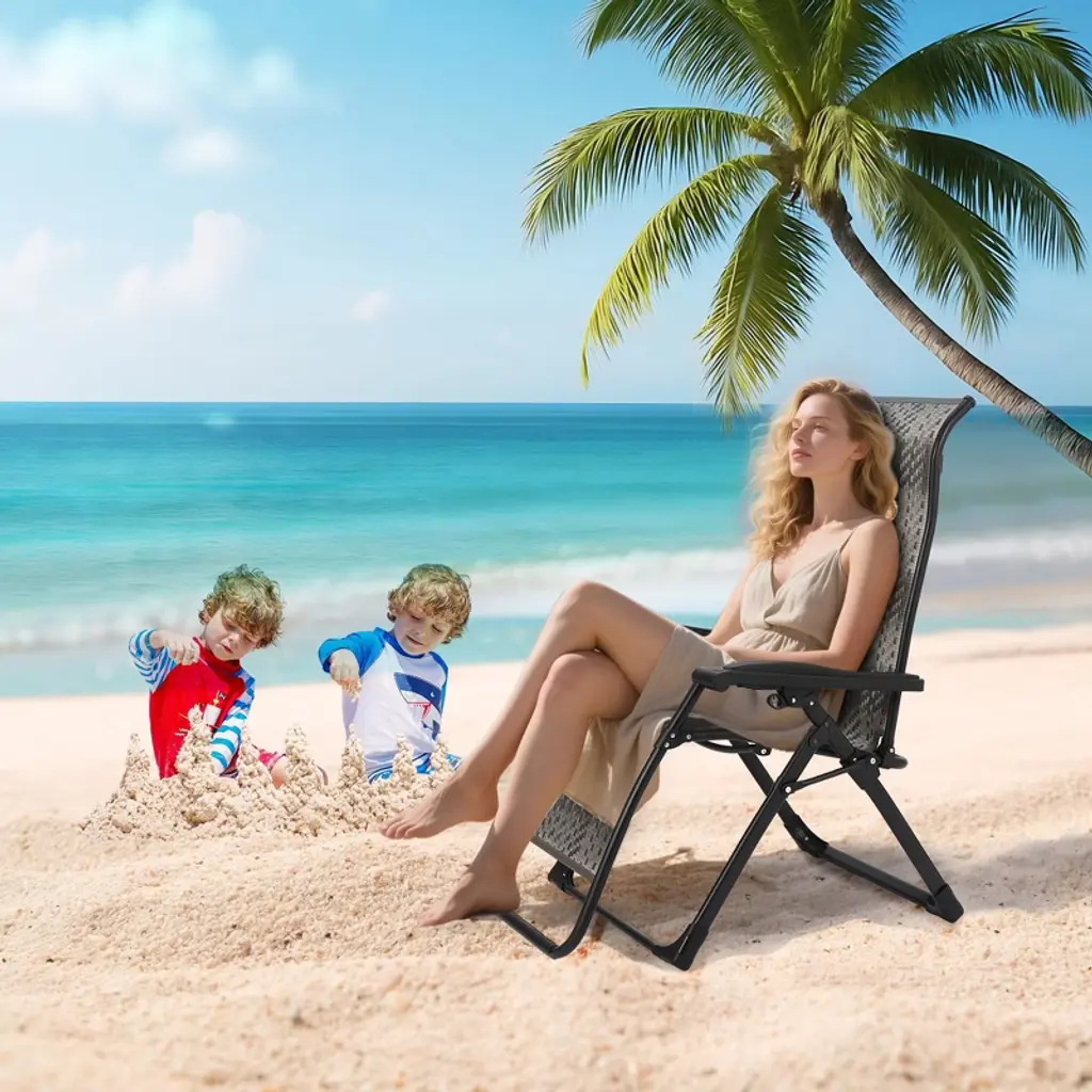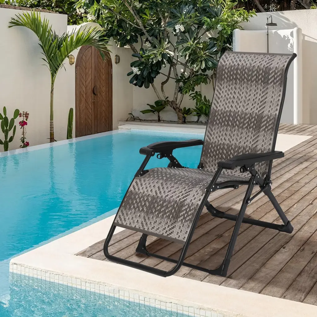 Rattan Foldable Lounge Chair, Outdoor Patio Adjustable Chair with Widened Armrest & Locking System, Portable Outdoor Recliners for Poolside Backyard Garden Balcony