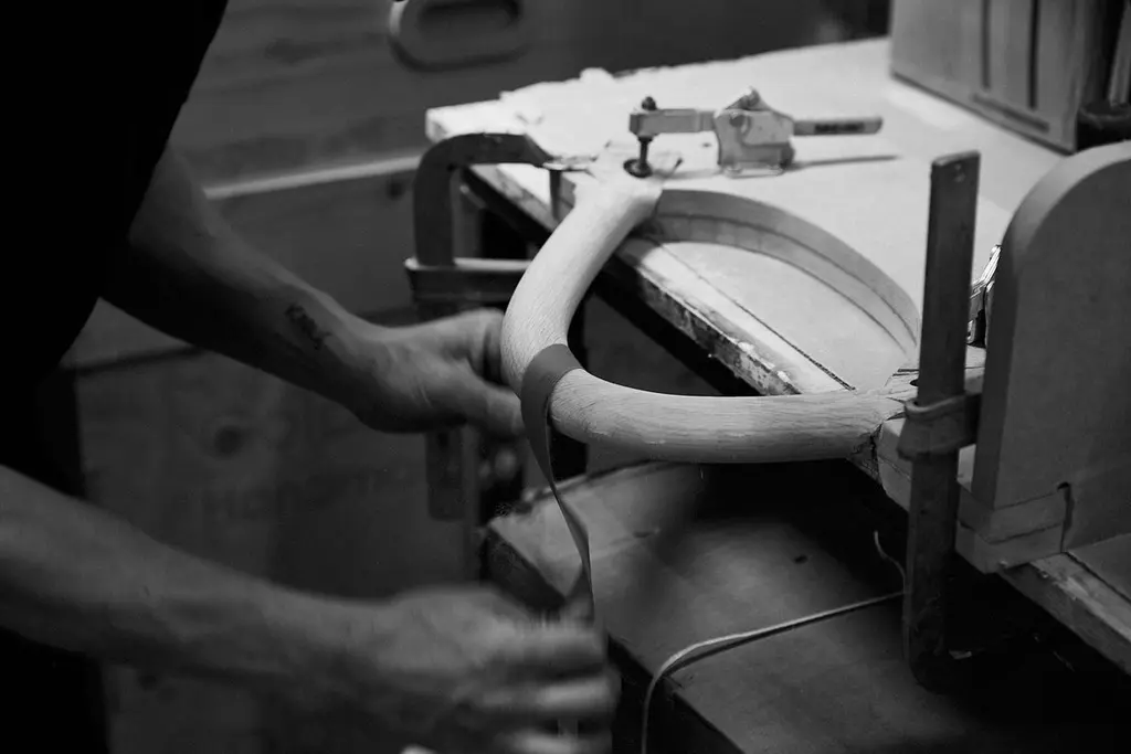 Official re-edition of the iconic clam chair by Arnold Madsen.Dagmar in collaboration with the estate of Arnold Madsen is proud to re-launch the Clam Chair - one of the most cherished and sought after Scandinavian furniture designs of the 20th century.The Clam Chair was first designed in 1944 in Copenhagen by Danish upholsterer Arnold Madsen. In 1945 Arnold founded the furniture company Madsen & Schubell together with the cabinetmaker Henry Schubell in order to produce this unique chair that became known as the Muslingstol or Clam chair due to its’ unique shape. Arnold & Henry achieved great commercial success with the Clam chair in Denmark and then in 1953 signed the exclusive rights to Norwegian manufacturers Vik & Blindheim who continued production in Norway until the 1960s. Over the years the Clam chair has become one of the most misattributed and copied designs of the 20th Century. But now, thanks to extensive recent research the history of the Clam has finally been corrected to show Arnold Madsen as the one true designer. Dagmar is proud to relaunch this iconic Scandinavian design in conjunction with the estate of Arnold Madsen for 2022 as part of our new Heritage Collection. This new production remains true to the original chair and Arnold's vision for the design. It features a solid beech wood frame and arms and legs made from either solid oak or walnut in a range of finishes. All the wood parts have been developed and manufactured using cutting edge 5-Axis CNC milling technology in the UK. The chair is upholstered using strictly traditional methods with 100% natural fibres including coir and wool felt fibre, French linen webbing and hessian. The Clam chair is available in a wide range of upholstery and wood finishes and is made exclusively in the UK by Dagmar Design.Measures: height: 82cm (32.3”)Depth: 80cm (31.5”)Width: 65cm (25.6”)Seat height: 42cm (16.5").Example shown: Pierre Frey Opio Boucle + Oiled walnut.