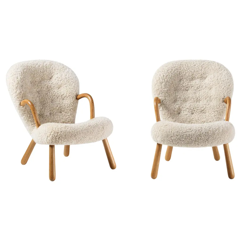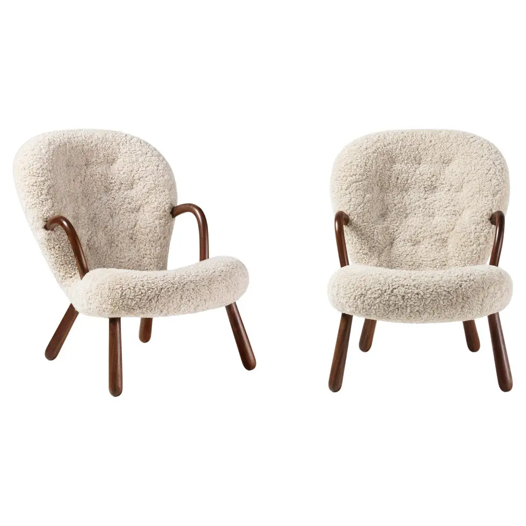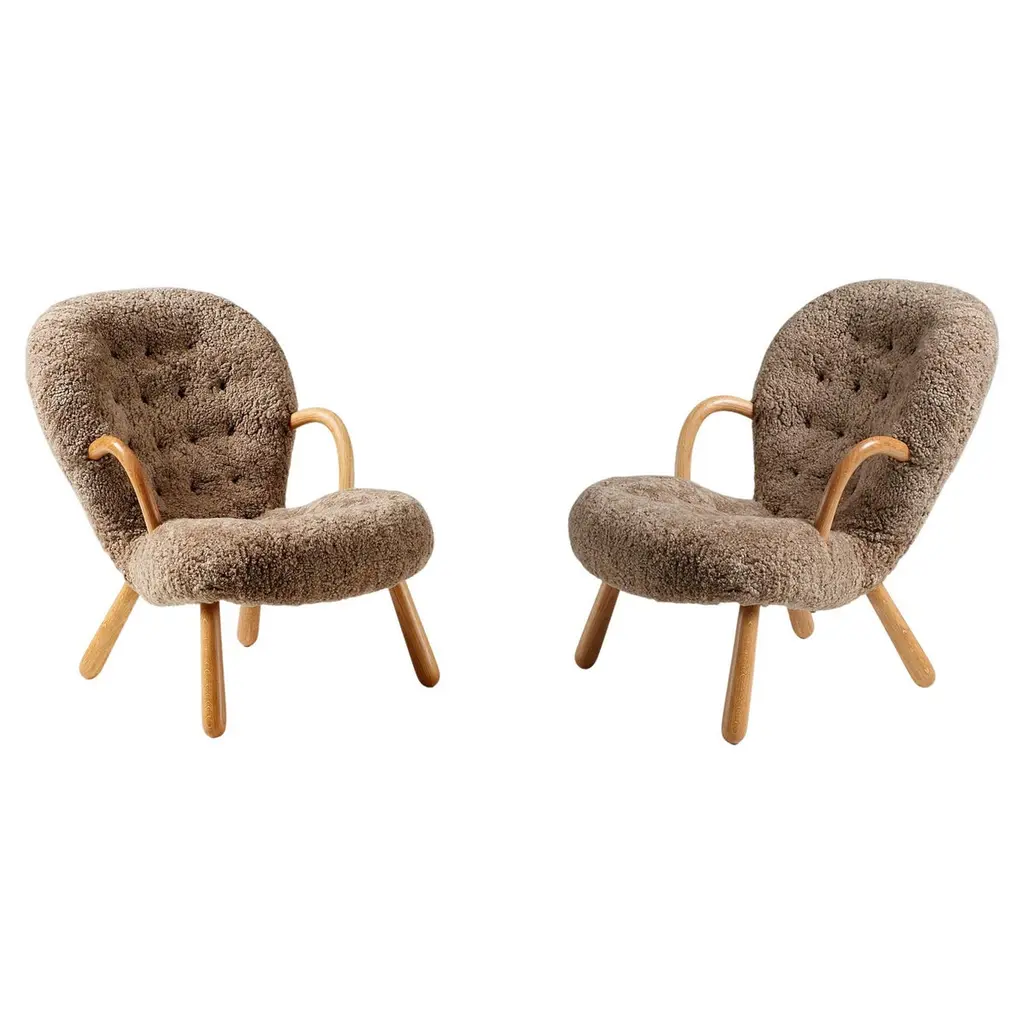 Re-Edition Sheepskin Clam Chairs By Arnold Madsen