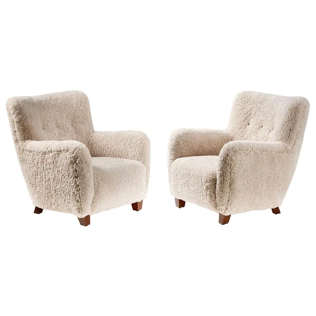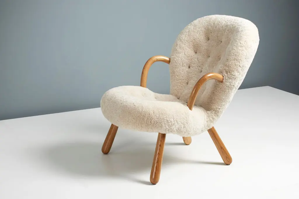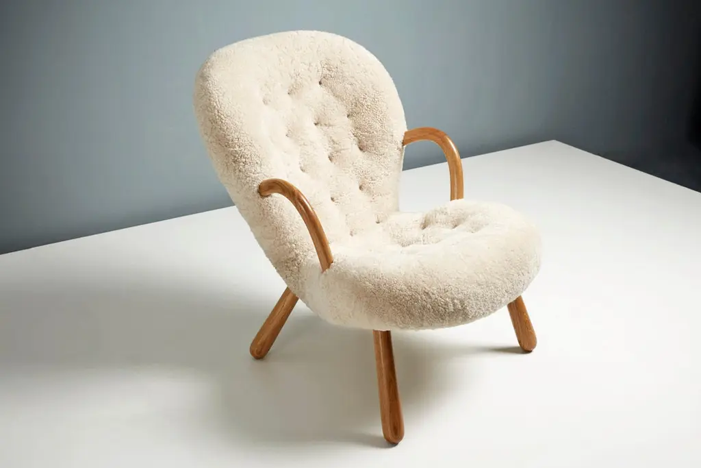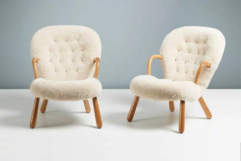 Re-Edition Sheepskin Clam Chairs By Arnold Madsen