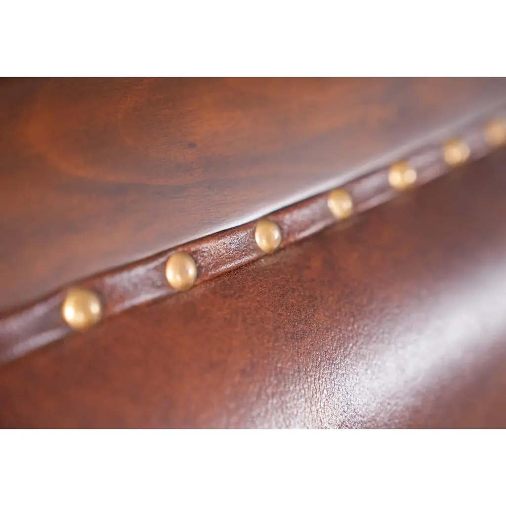 The Niagara Furniture Regency Leather Arm Chair with full grain leather upholstery combines a super simple design with sweeping lines and finely executed details to help make this great quality chair very popular. Finely hand carved details on the ears and arm of the chair distinguish it from the mass produced counter parts found in box stores, scrolled arms and saber legs give a timeless look of elegance suitable for any living space. Ready to use with our ever popular full grain Cordoba Brown leather the Regency Leather Arm Chair will look great in any setting in your home. Arm Height approximately at upholstery point 28 inches and seat height approximately 20 inches. Arm Chair Measures 25″w x 28″d x 40″h metric: 64 x 71 x 102