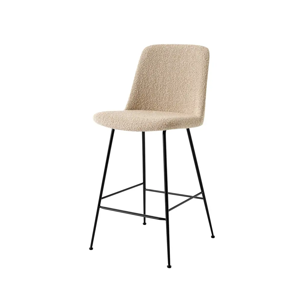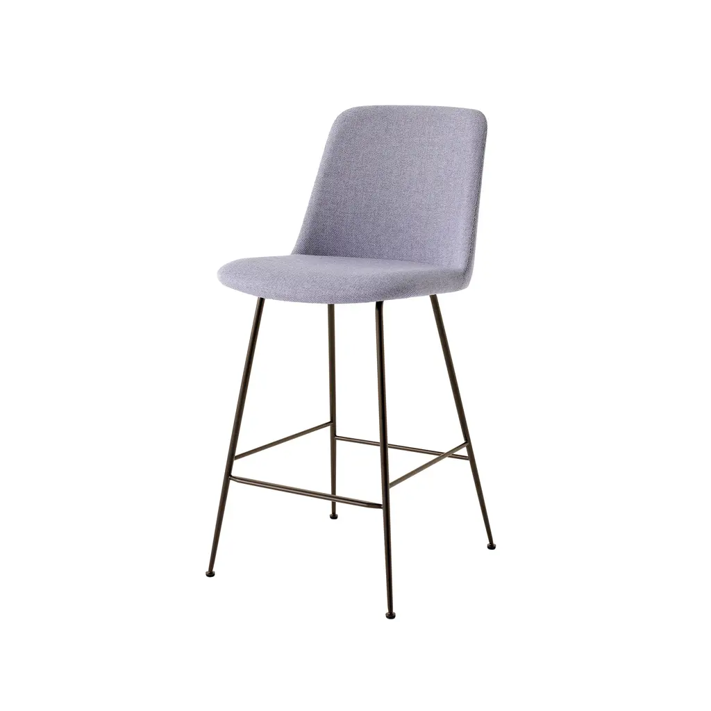 Clad in fine fabric or leather upholstery, &Tradition's sustainable bar and counter height seating adds a customization option as well as added comfort. Designer Hee Welling's signature recycled polypropylene molded chair makes an equally apropos choice for residential, office and hospitality venues with Rely's compact proportions and ergonomic back support. Clad in a chosen material over HR foam, this version also features the series' tubular steel legs in either black or bronzed finish.