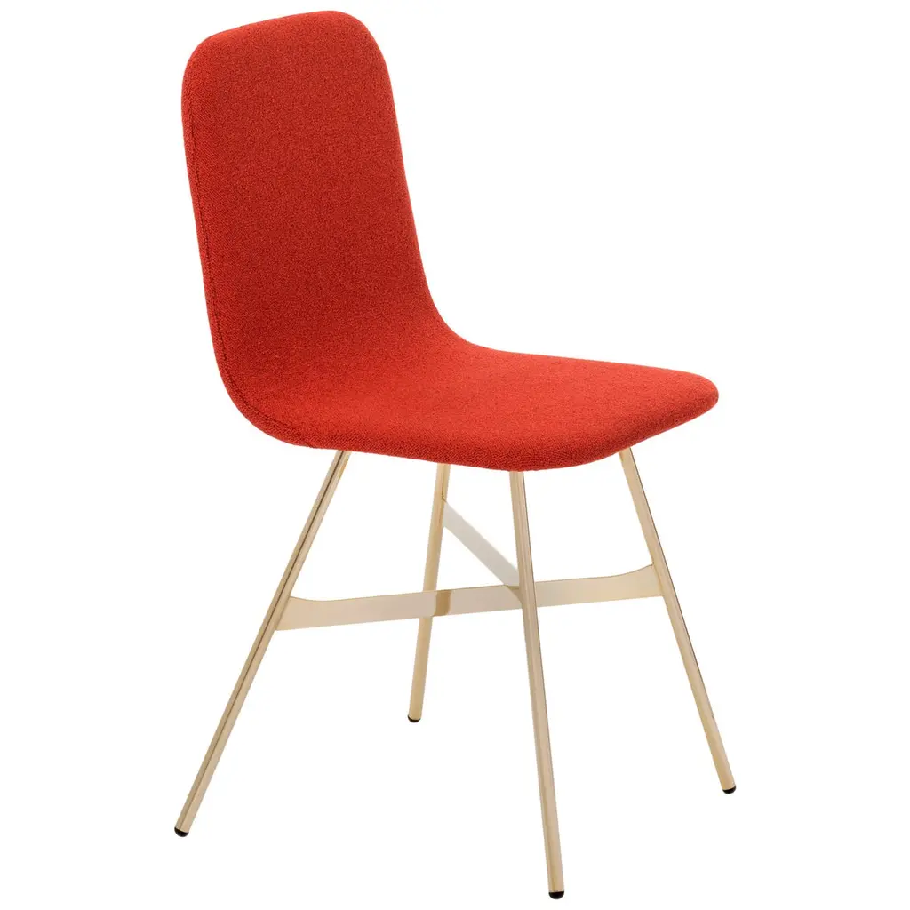 A gleaming chrome finish on its steel-tube legs adds a lively spark to this HW7 version from designer Hee Welling's environmentally conscious series. Also kitted out with a custom-upholstered seat cushion, the molded shell is fashioned from 100% recycled plastic and promises long sitting comfort with its classically Nordic ergonomic contours. In a selection of key colors, Rely also offers a wide selection of fabric and leather choices for the cushion.