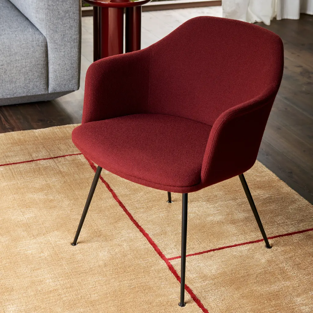 Copenhagen’s &Tradition pulls out all the stops in this version of Rely, completely upholstered in prime fabric or leather over HR foam with a added matching seat cushion. The minimalist standard gets a 21st century rethink from designer Hee Welling, who casts its underlying molded contours in recycled polypropylene. Whether chosen as a dining chair, to accompany a desk or on its own for lounging, it makes a sleek impression with a steel-tube base in black or bronze.
