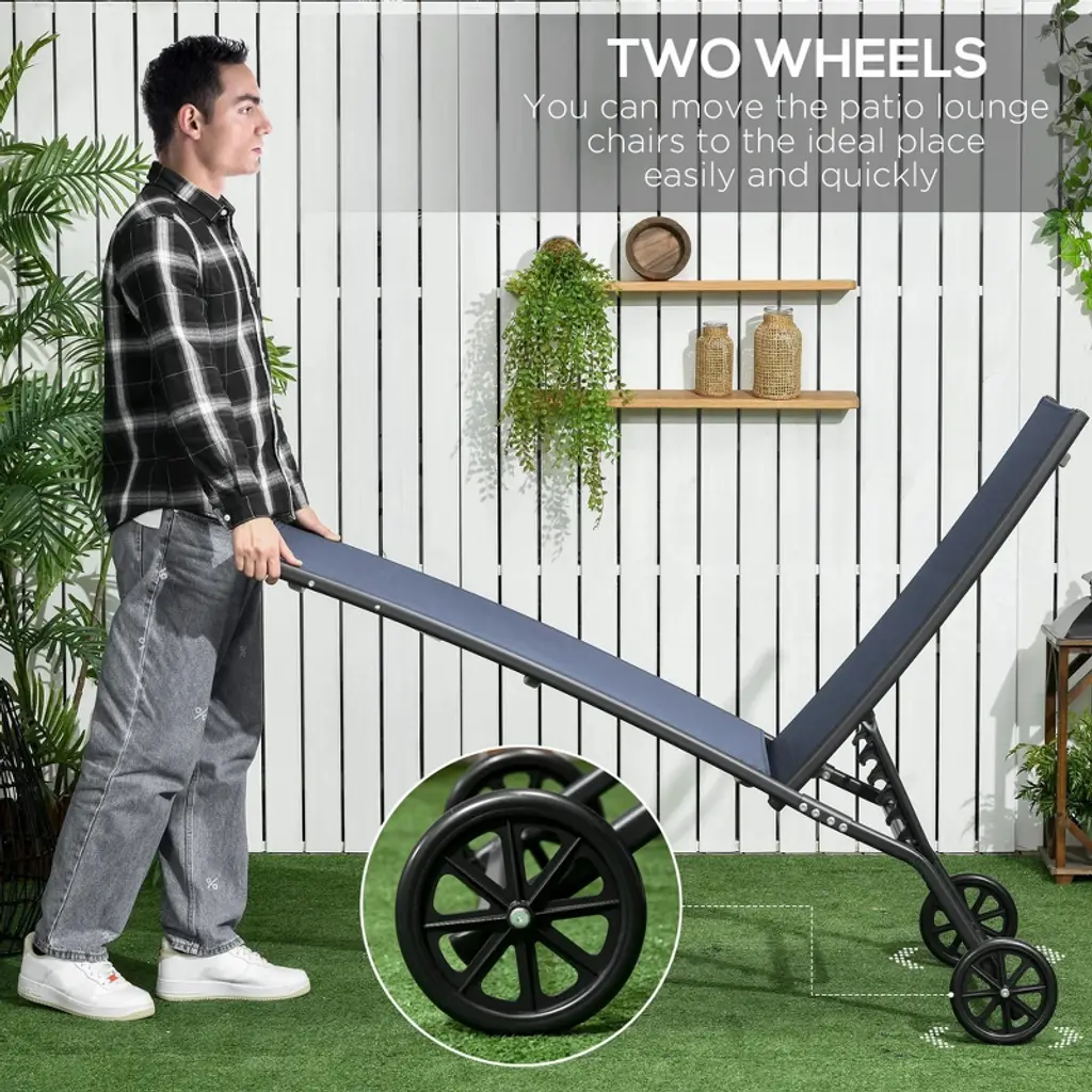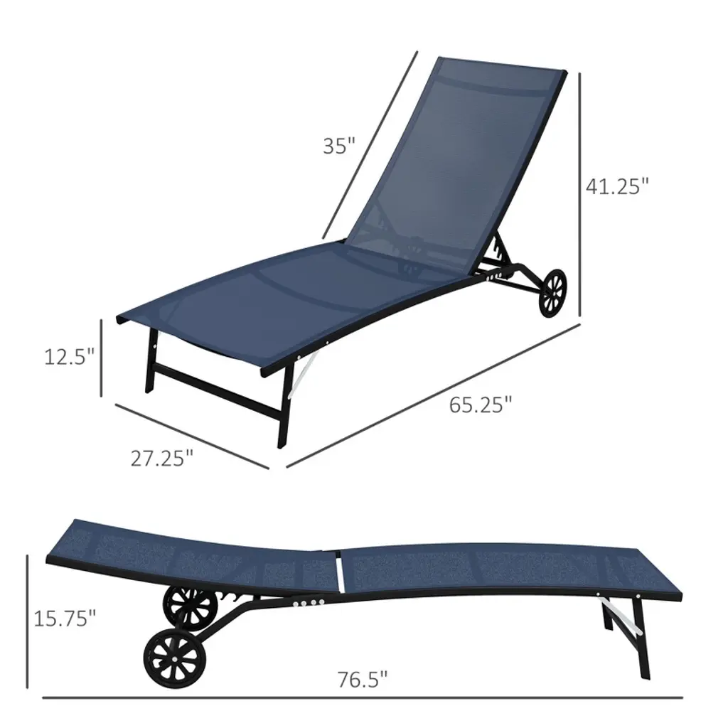 Resenkos Outdoor Versatile Comfort Chairs With Wheels, 5-level Adjustable Backrest For Patio, Beach, Yard, Pool Relaxation, Dark Blue Elegance, Dark