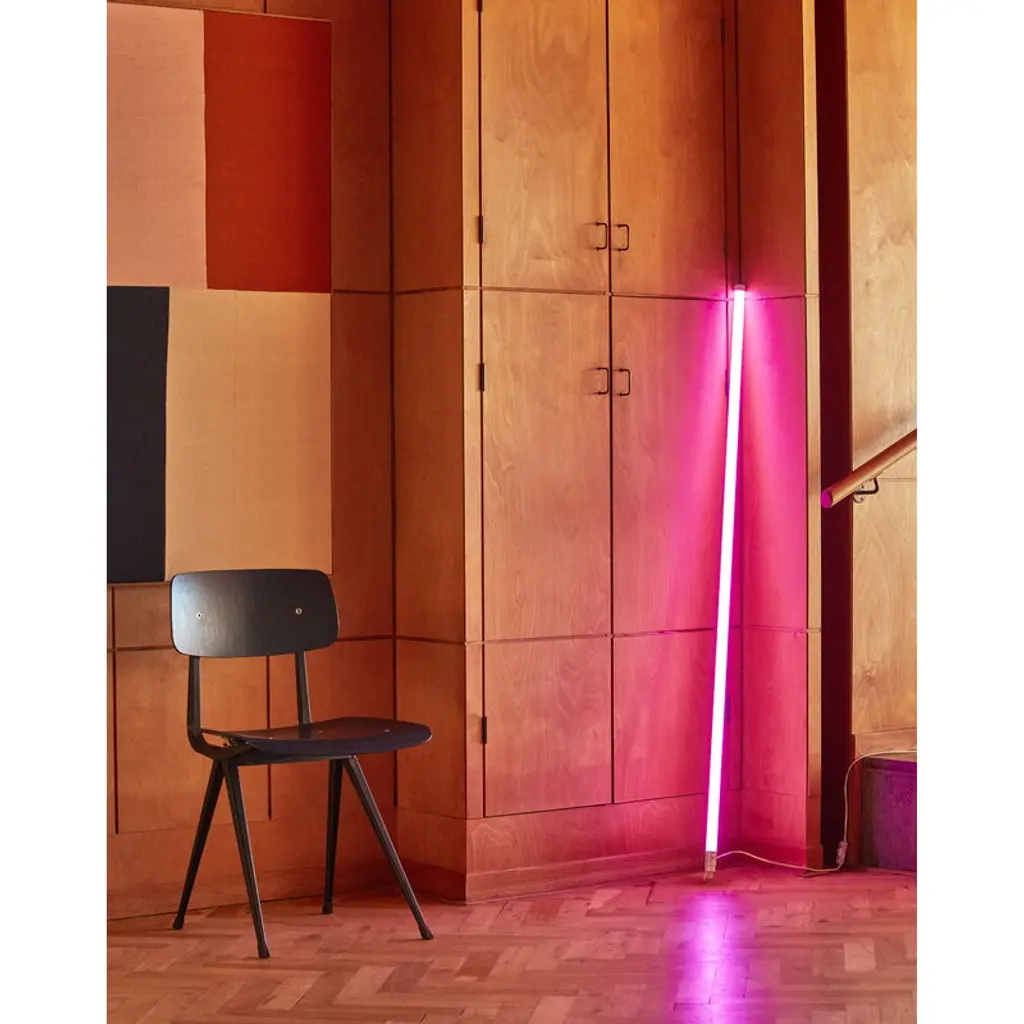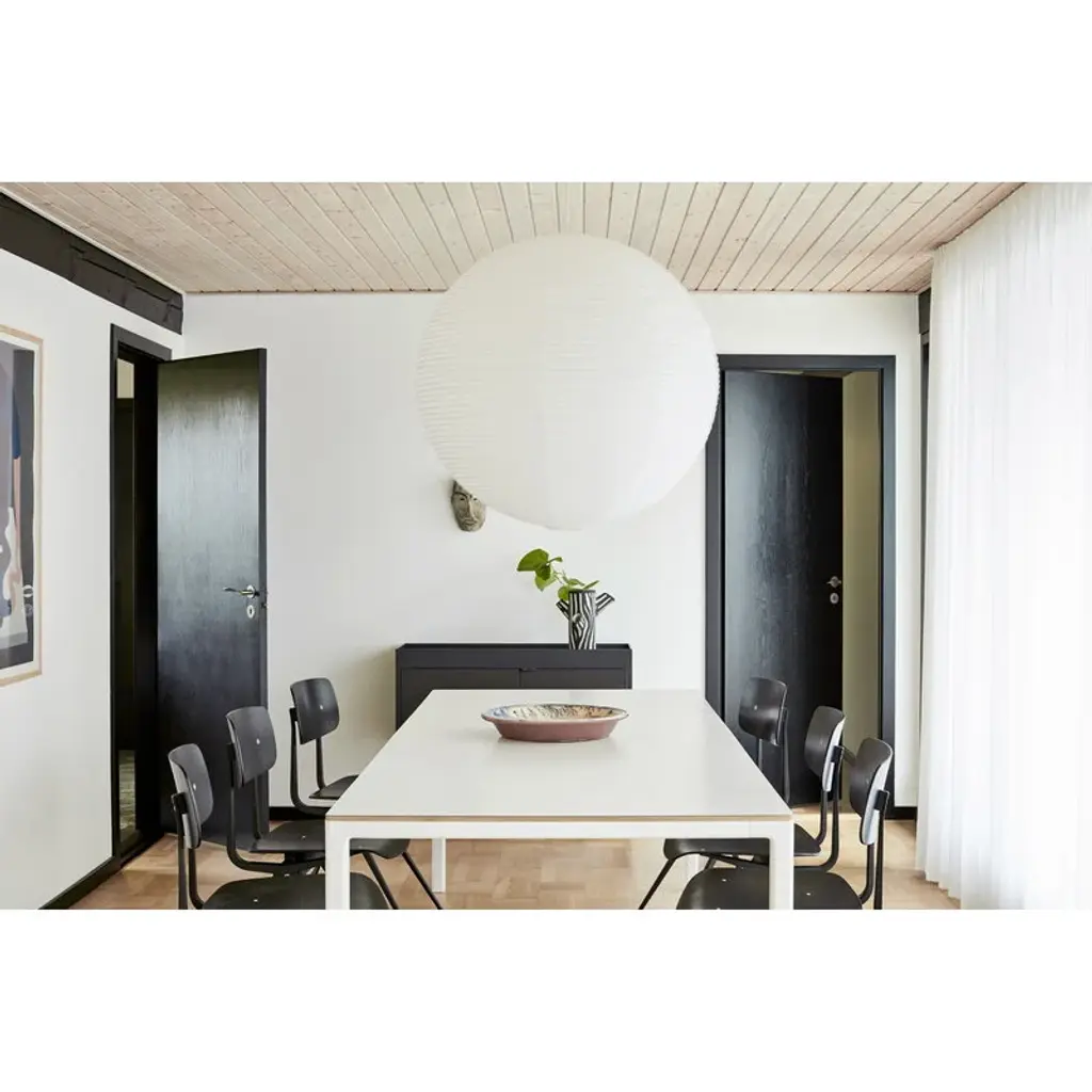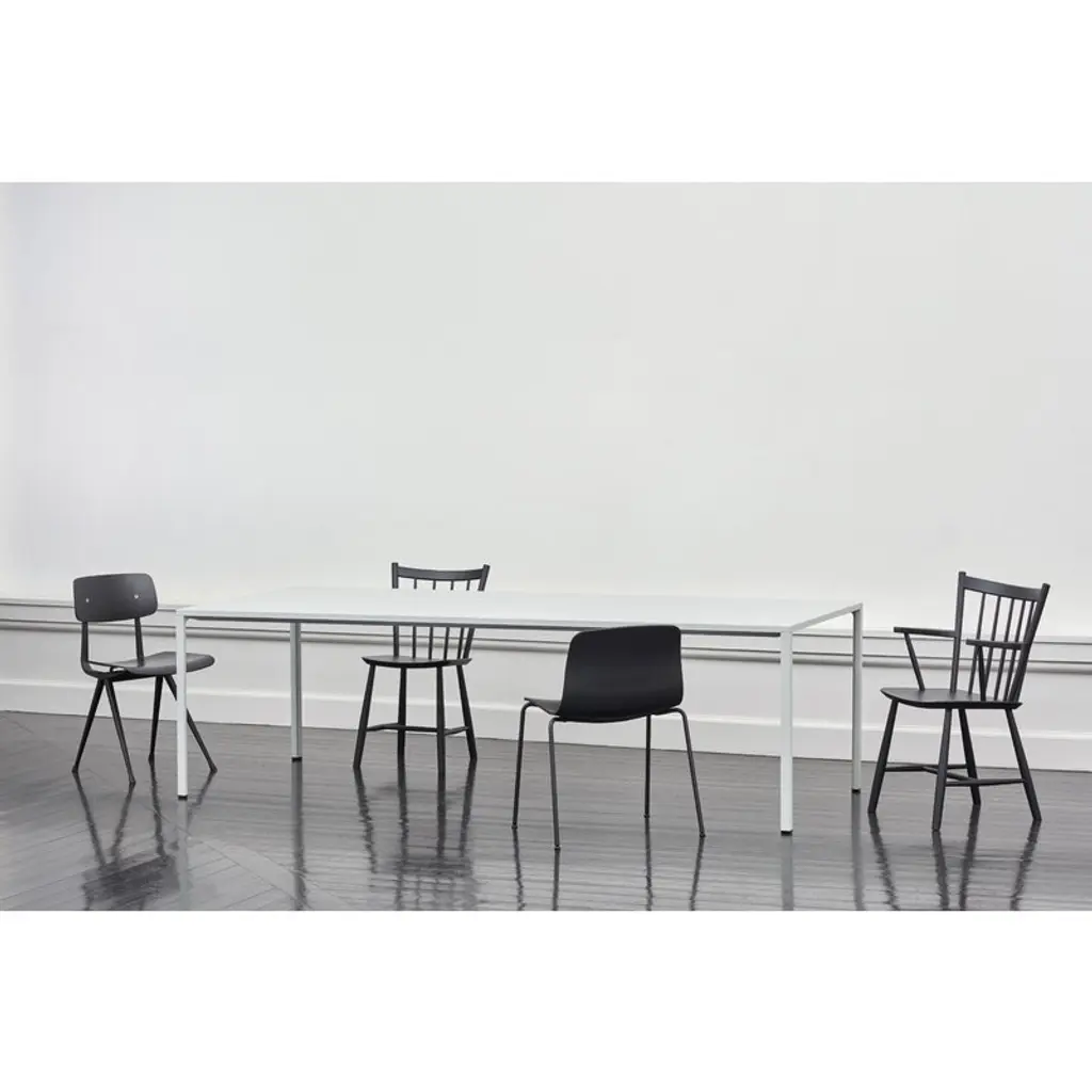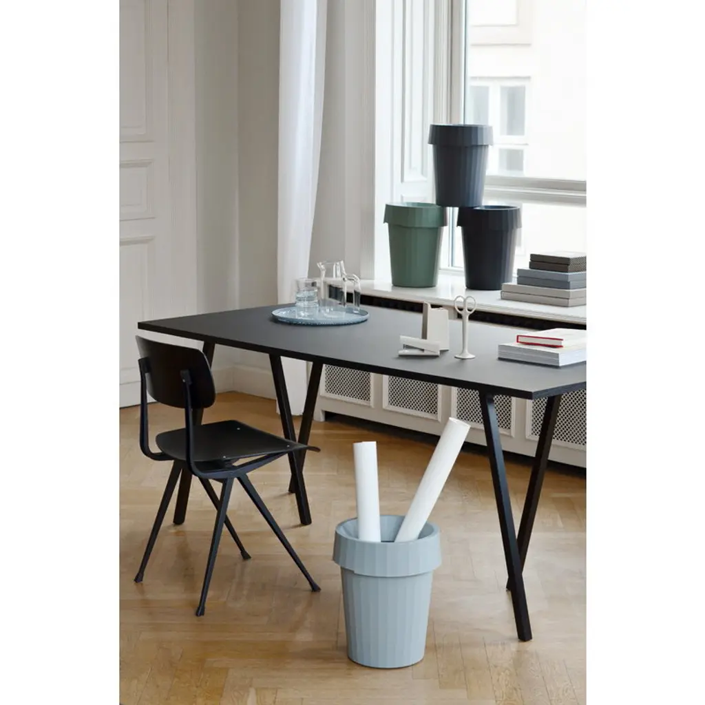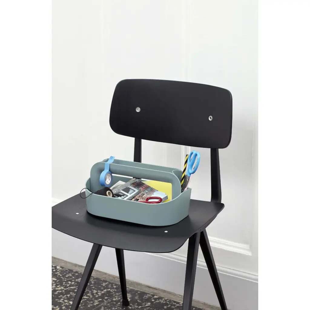The Result chair, designed by Friso Kramer and Wim Rietveld for Ahrend in the 1950s, has been relaunched by HAY in collaboration with Ahrend. A simplistic combination of sleek steel frame and curved plywood seat and back, Result was regarded in the 50s as a masterpiece in the innovative use of sheet steel, and it has maintained its fresh appearance until today. Thanks to its light and functionalist design, Result used to be a popular chair in Scandinavian schools, and it has been widely used in both public and private contexts. Framer and Rietveld created the Result chair as a pair for the Pyramid table, which makes a perfect match for the chair. Result is available in several different combinations of base colors and wood finishes. In 2021, HAY renewed the surface treatments of its wood furniture by replacing the paints and lacquers with more environmentally friendly, water-based alternatives. This chair is of newer production and has been finished with a water-based lacquer.