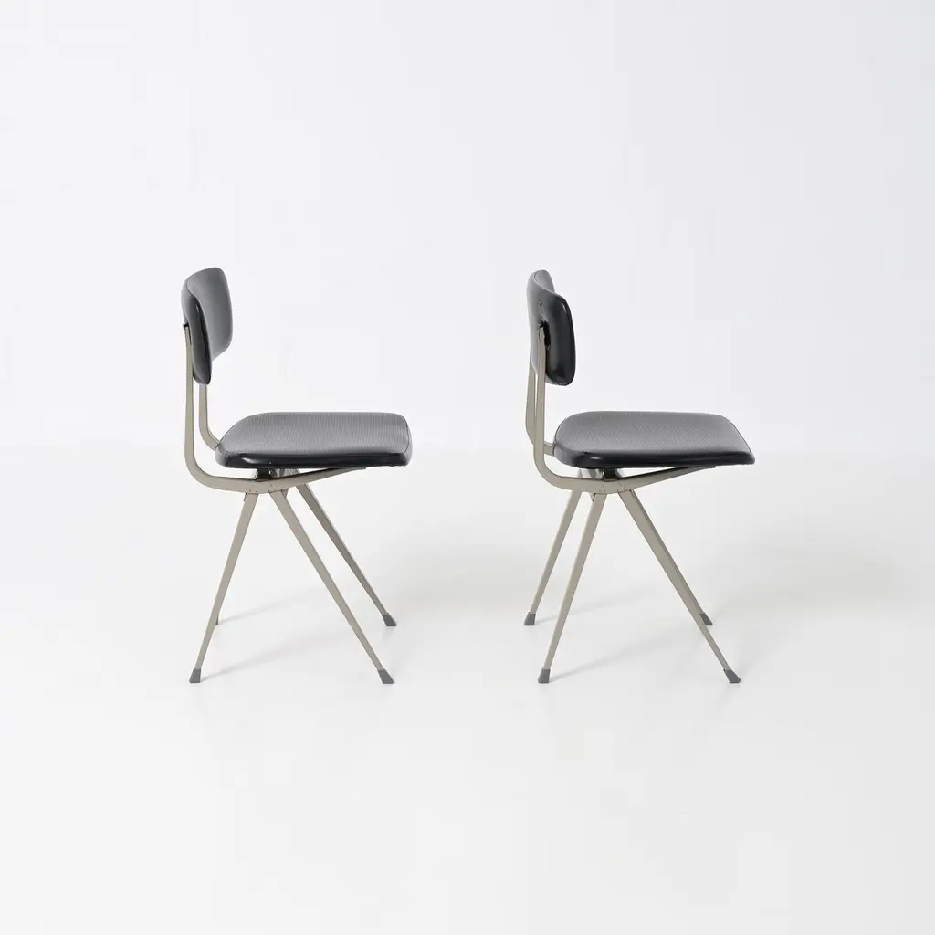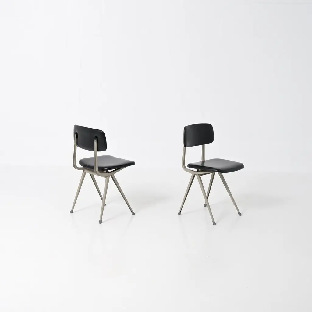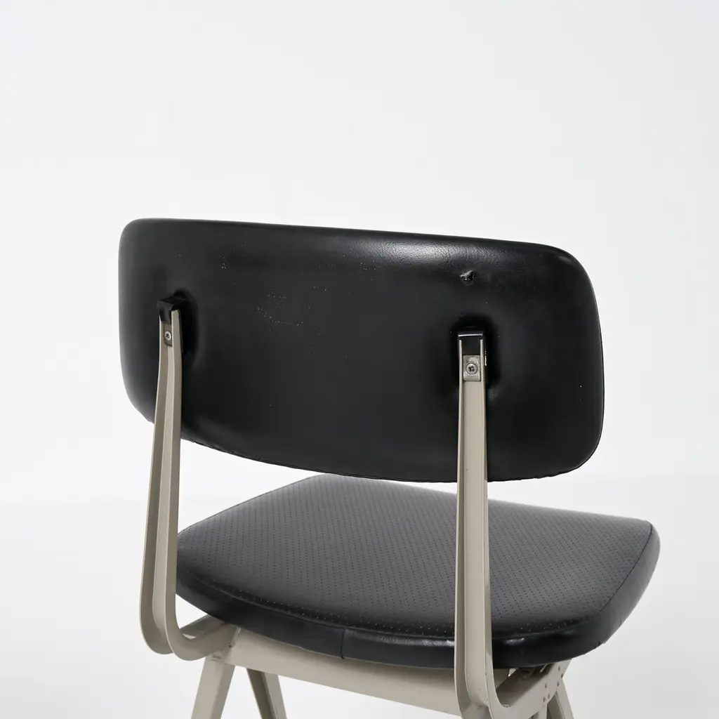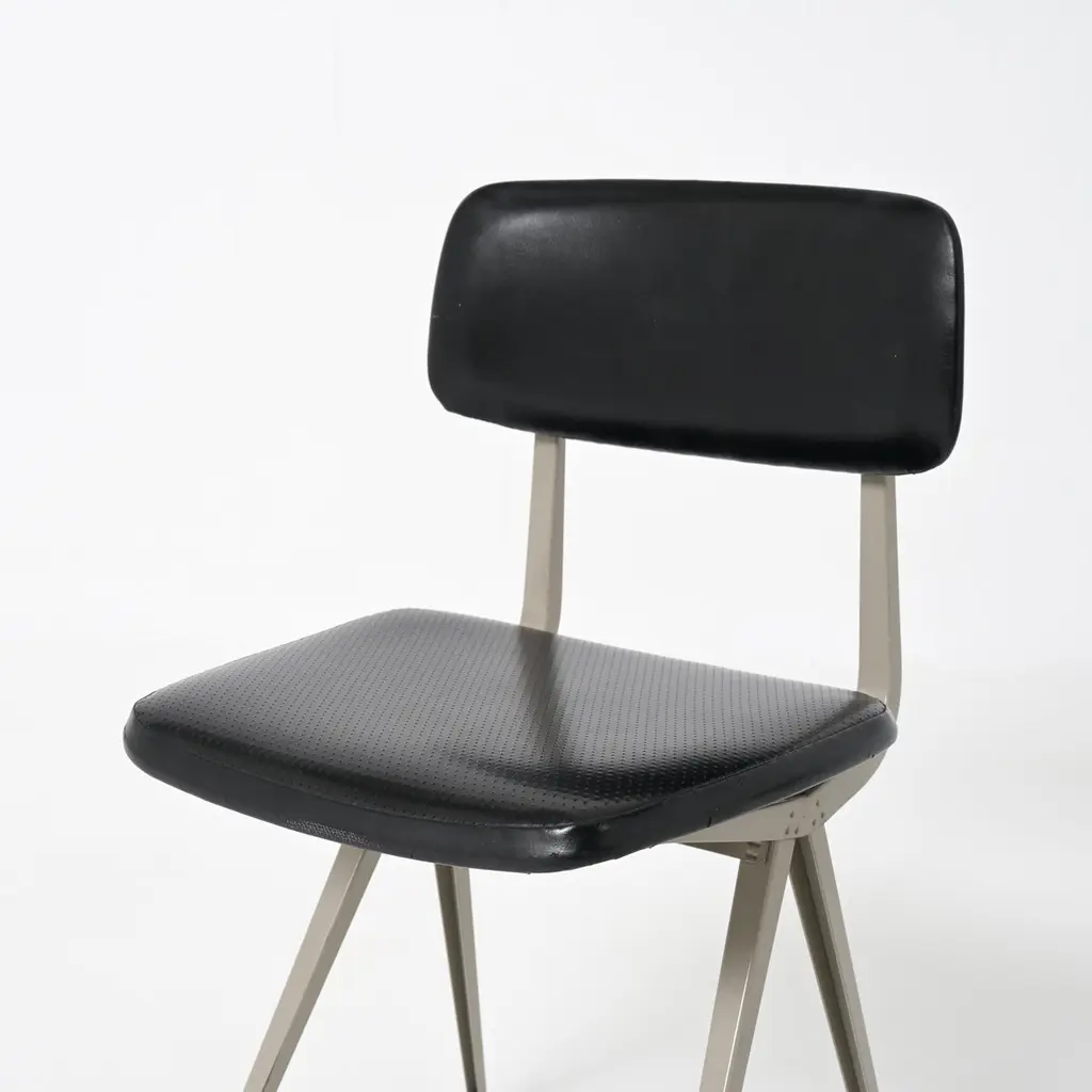 The industrial Result chair Result was designed by Friso Kramer and Wim Rietveld for Ahrend de Cirkel in 1958.This chair is from the first series. It has a grey sheet steel frame and a leatherette seat and back.This chair is in good condition. Take a look at all detail pictures.Lit.: Brentjens, Yvonne, De stoel van Friso Kramer/ Friso Kramer’s Chair, nai010 uitgevers/publishers, p. 110, p. 128.