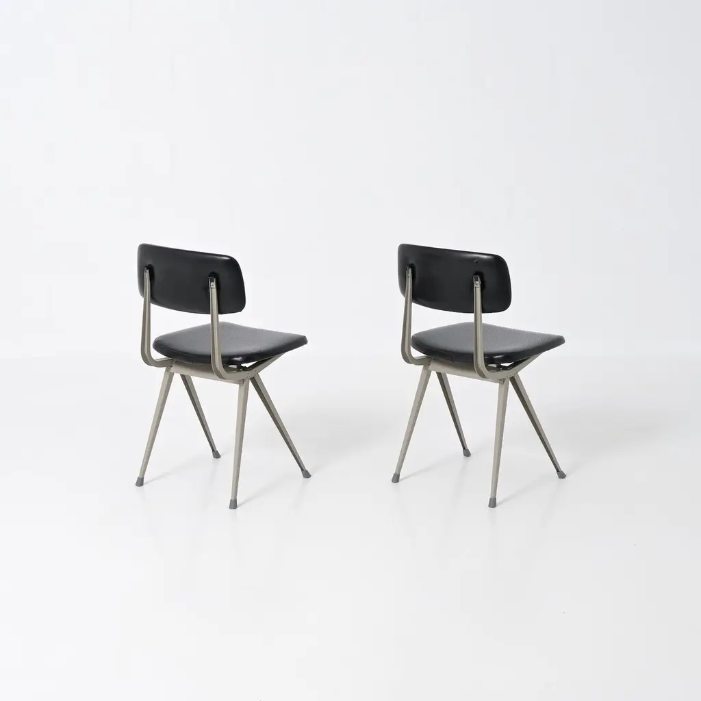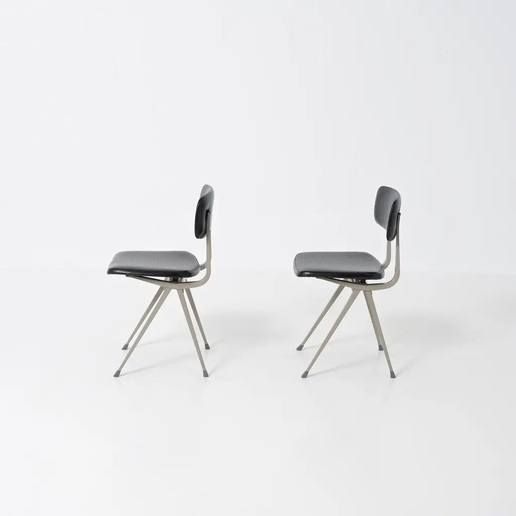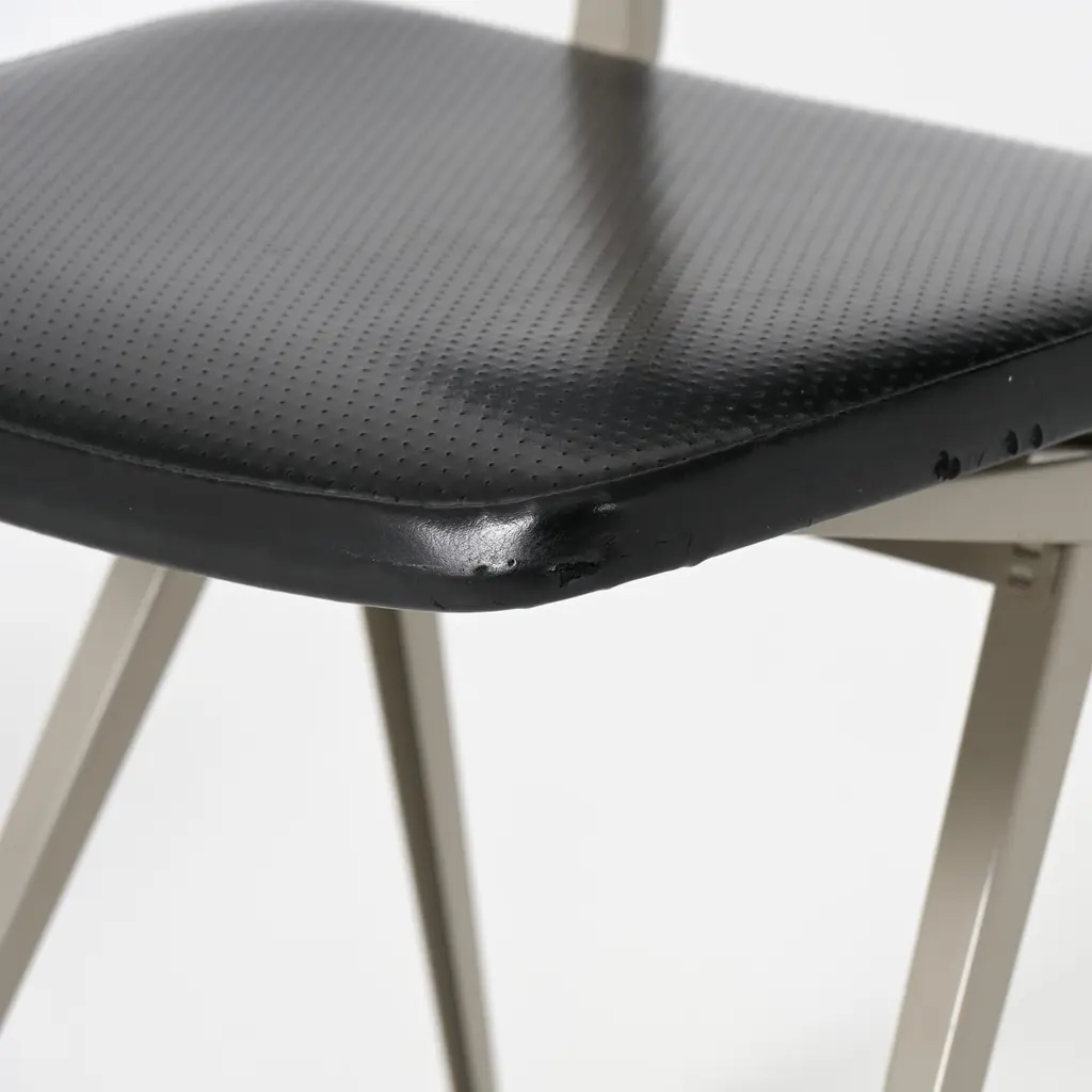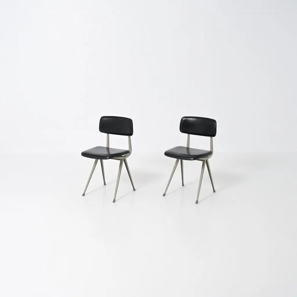 The industrial Result chair Result was designed by Friso Kramer and Wim Rietveld for Ahrend de Cirkel in 1958.This chair is from the first series. It has a grey sheet steel frame and a leatherette seat and back.This chair is in good condition. Take a look at all detail pictures.Lit.: Brentjens, Yvonne, De stoel van Friso Kramer/ Friso Kramer’s Chair, nai010 uitgevers/publishers, p. 110, p. 128.