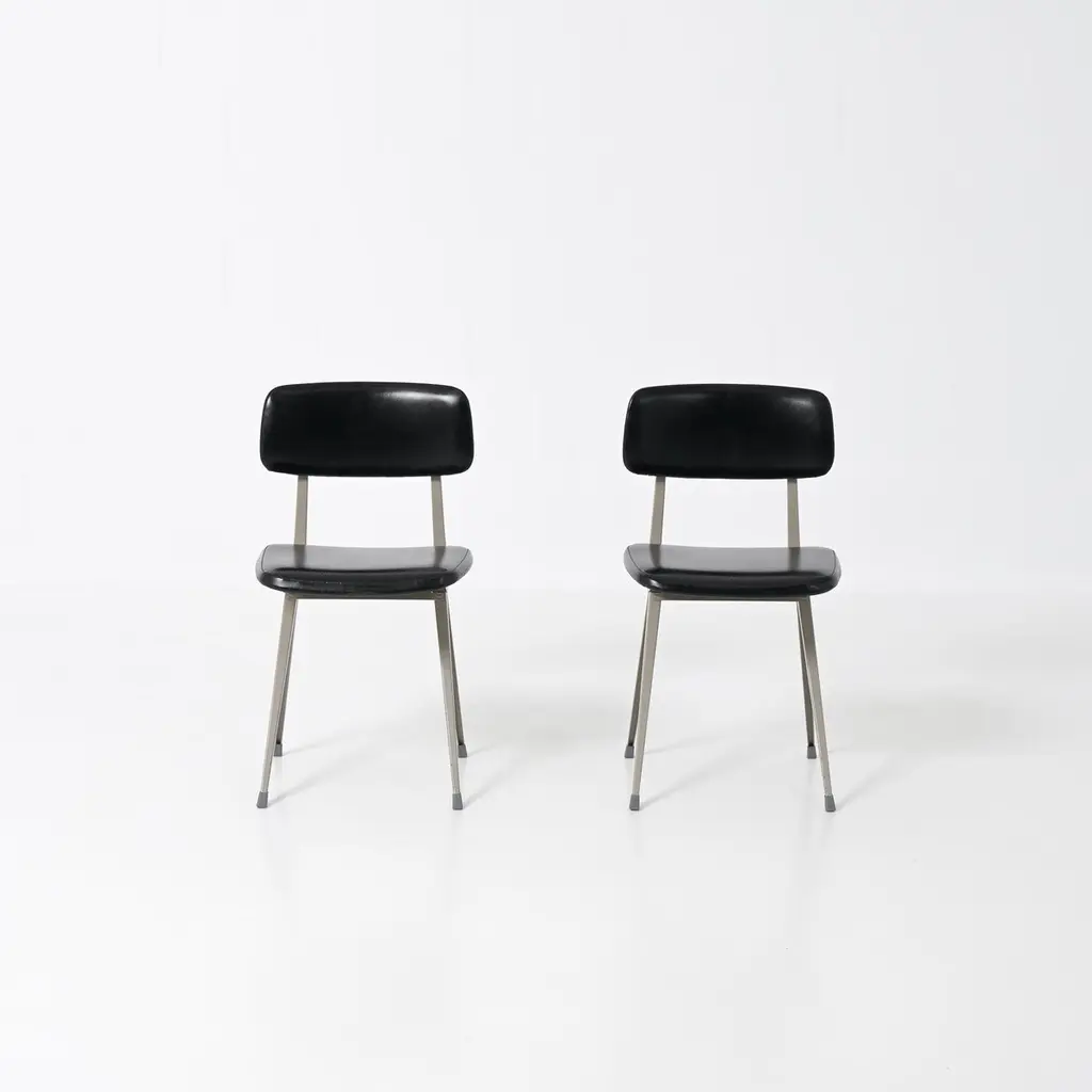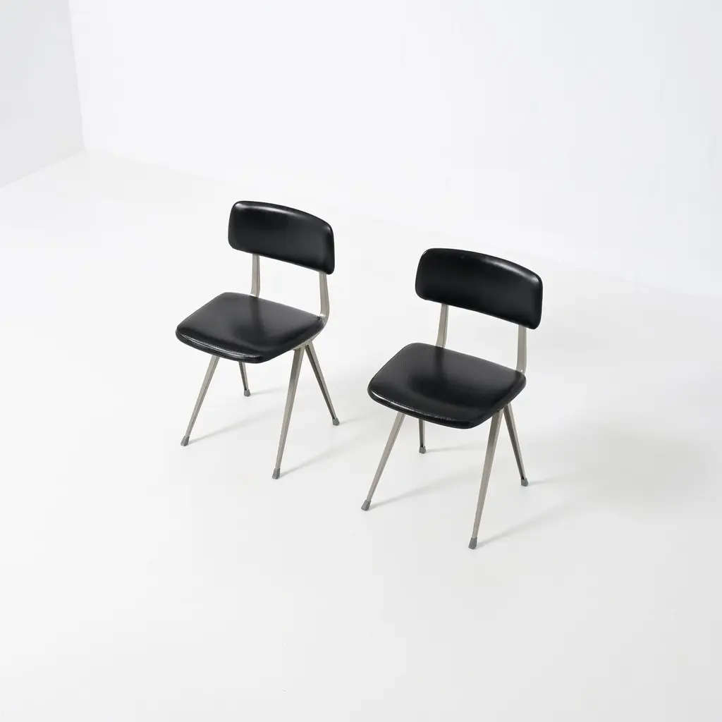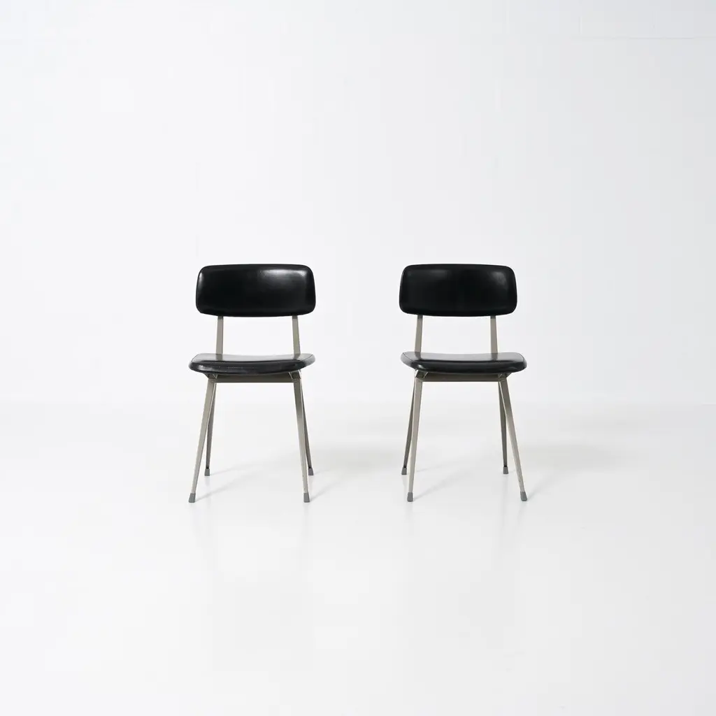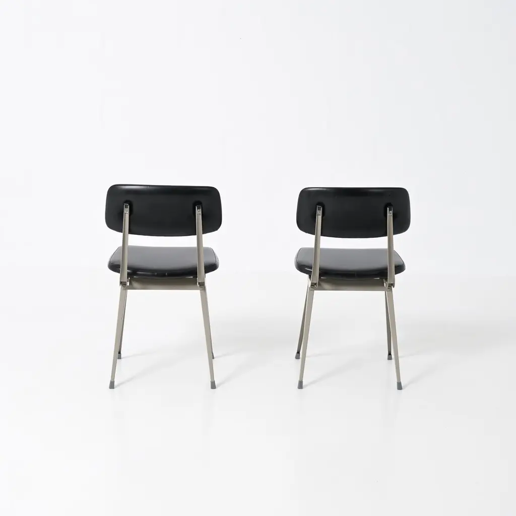 The industrial Result chair Result was designed by Friso Kramer and Wim Rietveld for Ahrend de Cirkel in 1958.This chair is from the first series. It has a grey sheet steel frame and a leatherette seat and back.This chair is in good condition. Take a look at all detail pictures.Lit.: Brentjens, Yvonne, De stoel van Friso Kramer/ Friso Kramer’s Chair, nai010 uitgevers/publishers, p. 110, p. 128.