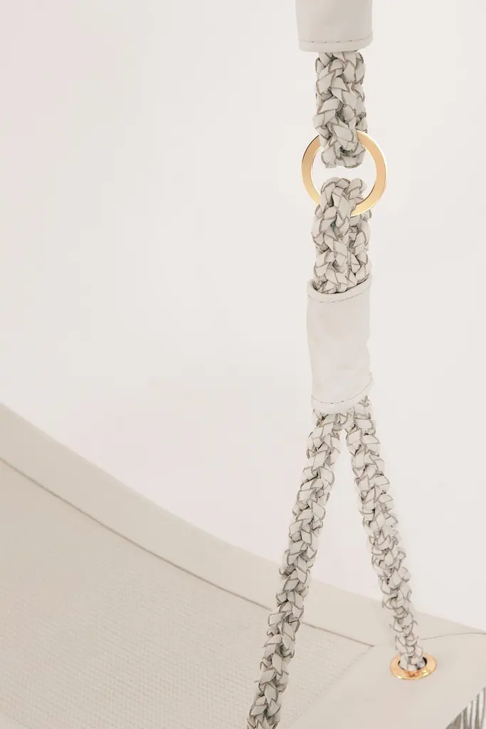 "Revoar" Hanging Swing Chair In Natural Leather Handmade In Pearl Color