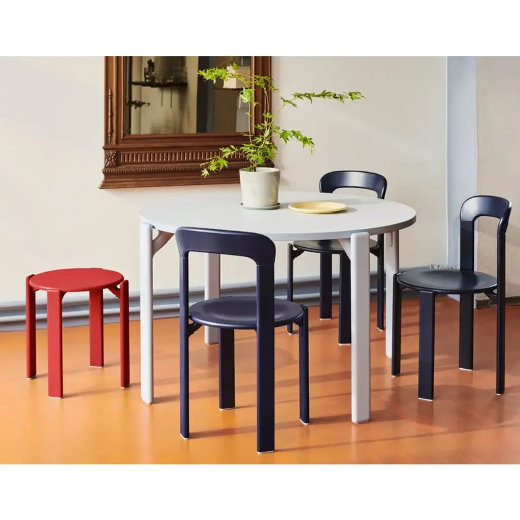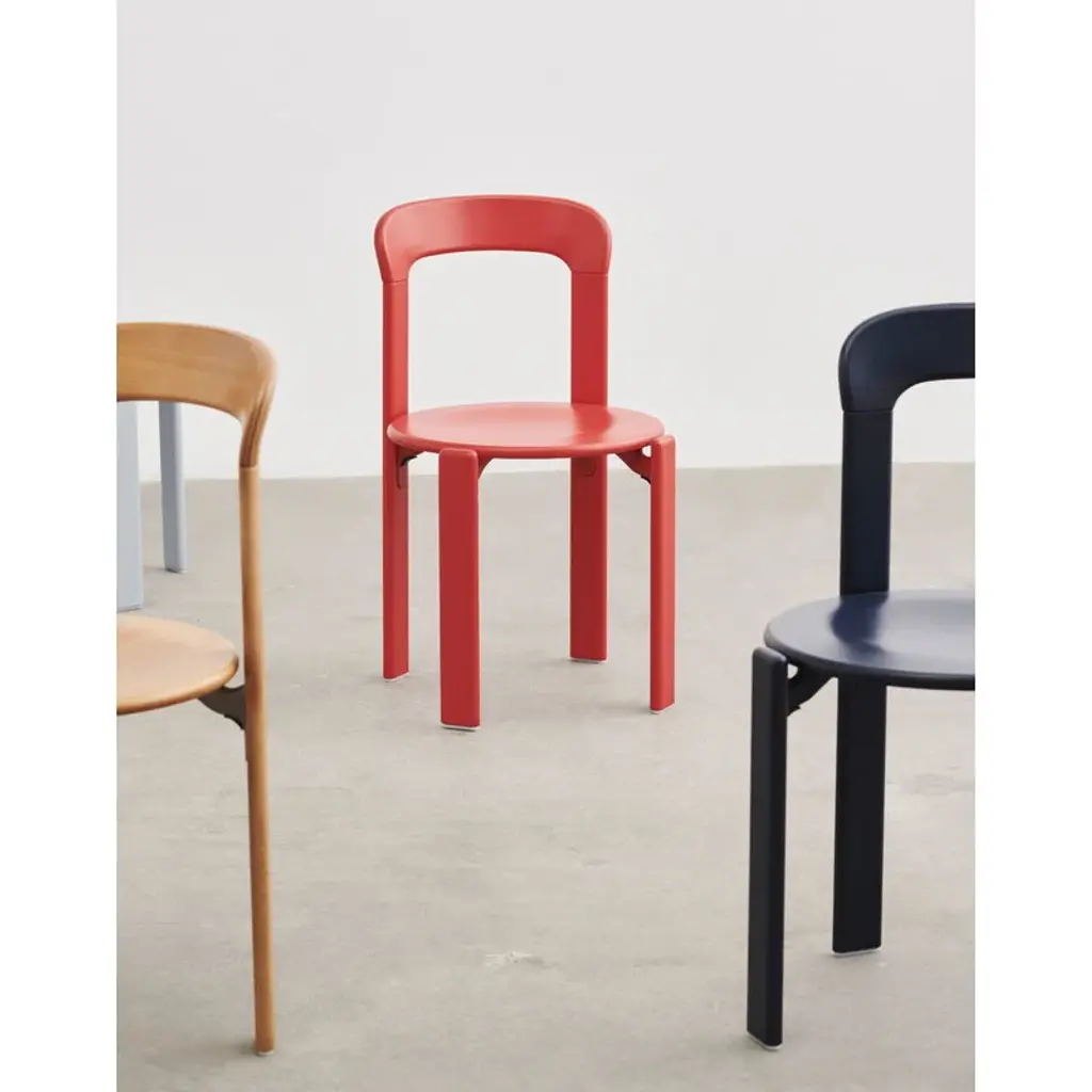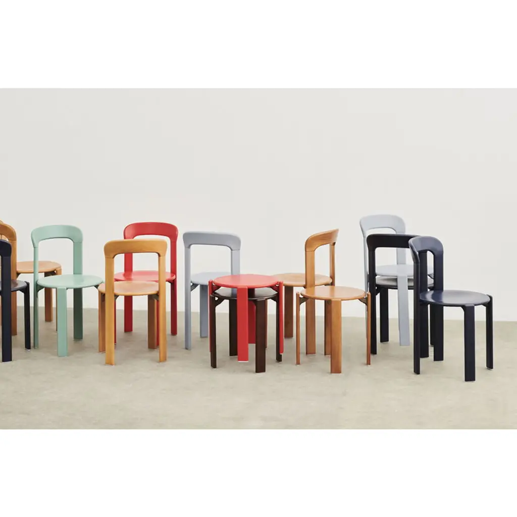 HAY's Rey chair is a fresh reinterpretation of the iconic chair designed by Bruno Rey in 1971. The classic collection, re-invented and re-released in collaboration with the original manufacturer, Swiss Dietiker, charms with its softly rounded lines and simple but detailed design. The timeless appeal of the Rey chair makes it an impressive addition to all spaces private and public alike. In the Rey collection, the wooden frame and seat are combined in an innovative way with die-cast aluminum brackets. The unique mechanism also gives the chair its distinctive look: the seat looks almost as if it is floating, perfecting the robust design with an irresistibly attractive lightness.