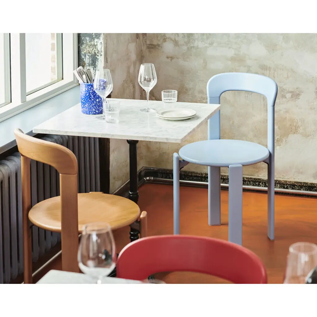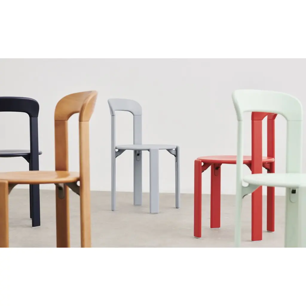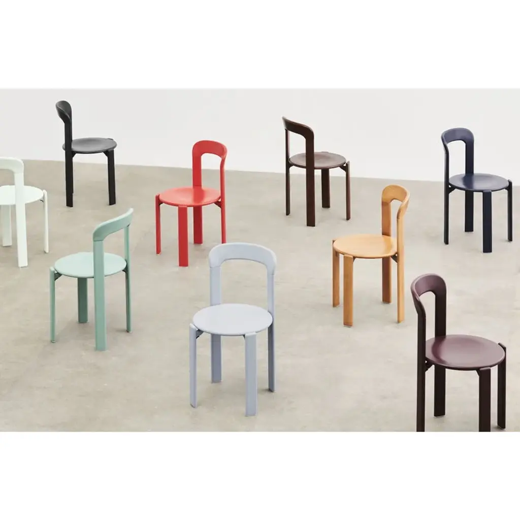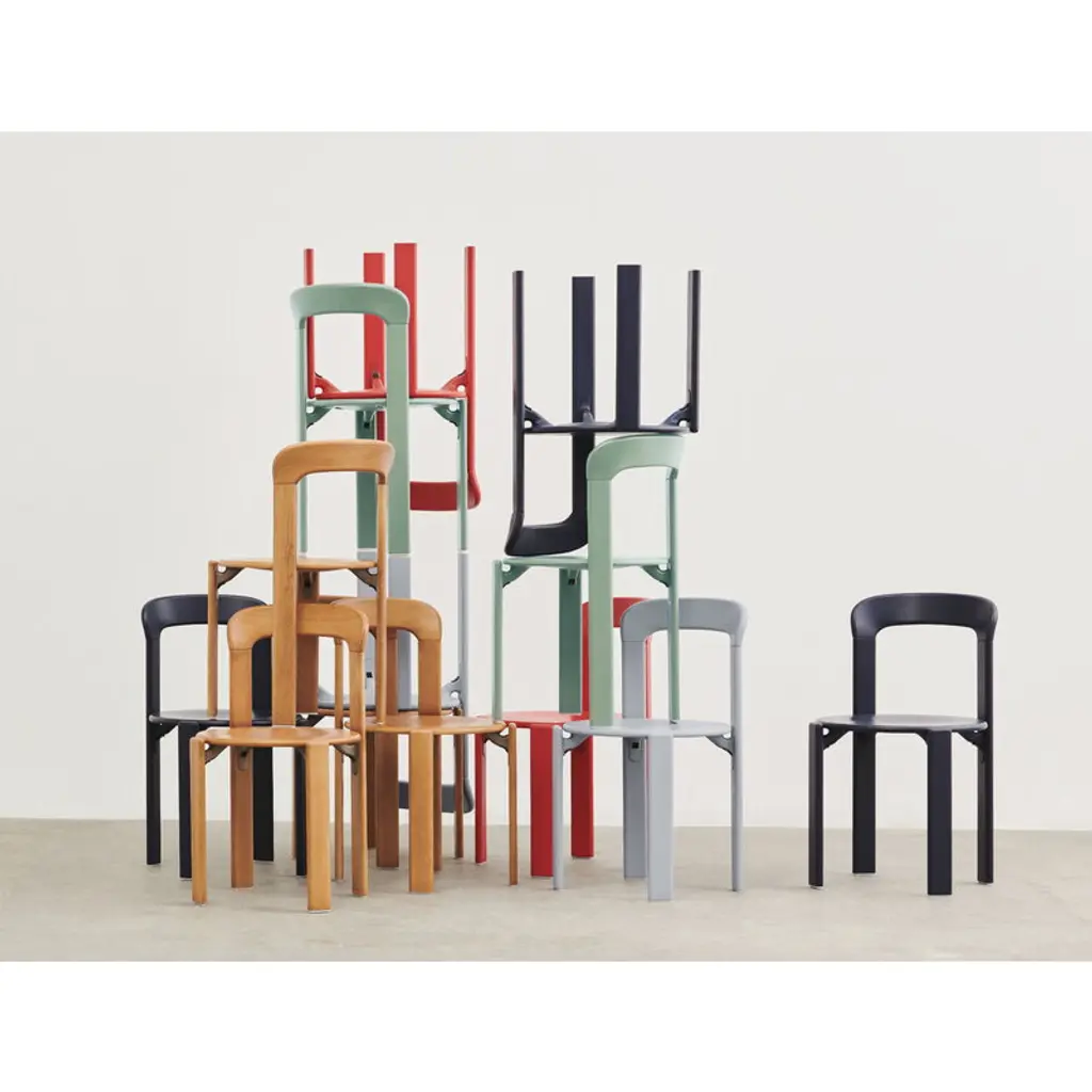HAY's Rey chair is a fresh reinterpretation of the iconic chair designed by Bruno Rey in 1971. The classic collection, re-invented and re-released in collaboration with the original manufacturer, Swiss Dietiker, charms with its softly rounded lines and simple but detailed design. The timeless appeal of the Rey chair makes it an impressive addition to all spaces private and public alike. In the Rey collection, the wooden frame and seat are combined in an innovative way with die-cast aluminum brackets. The unique mechanism also gives the chair its distinctive look: the seat looks almost as if it is floating, perfecting the robust design with an irresistibly attractive lightness.