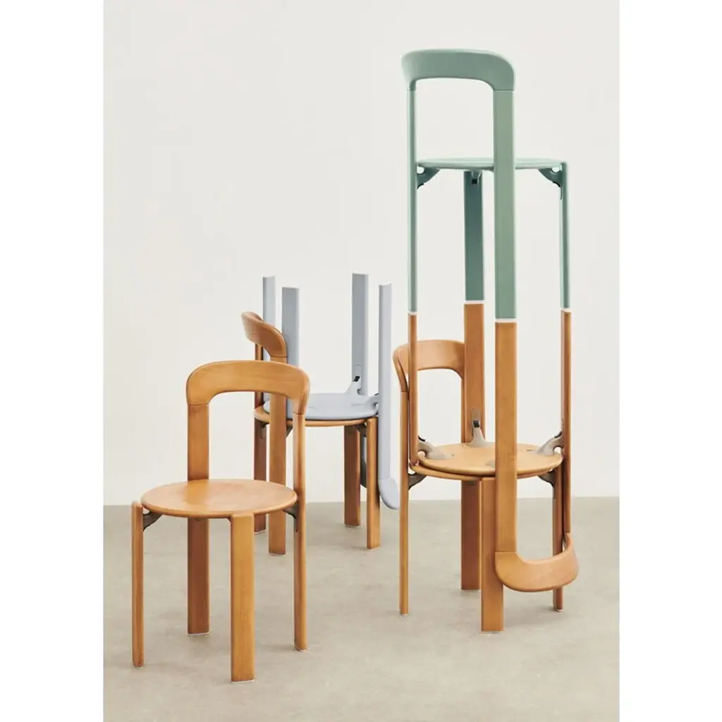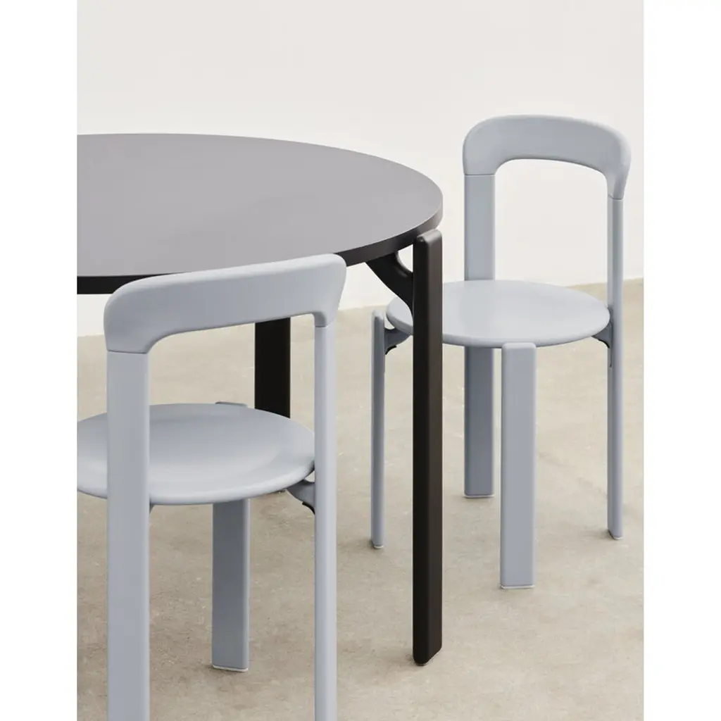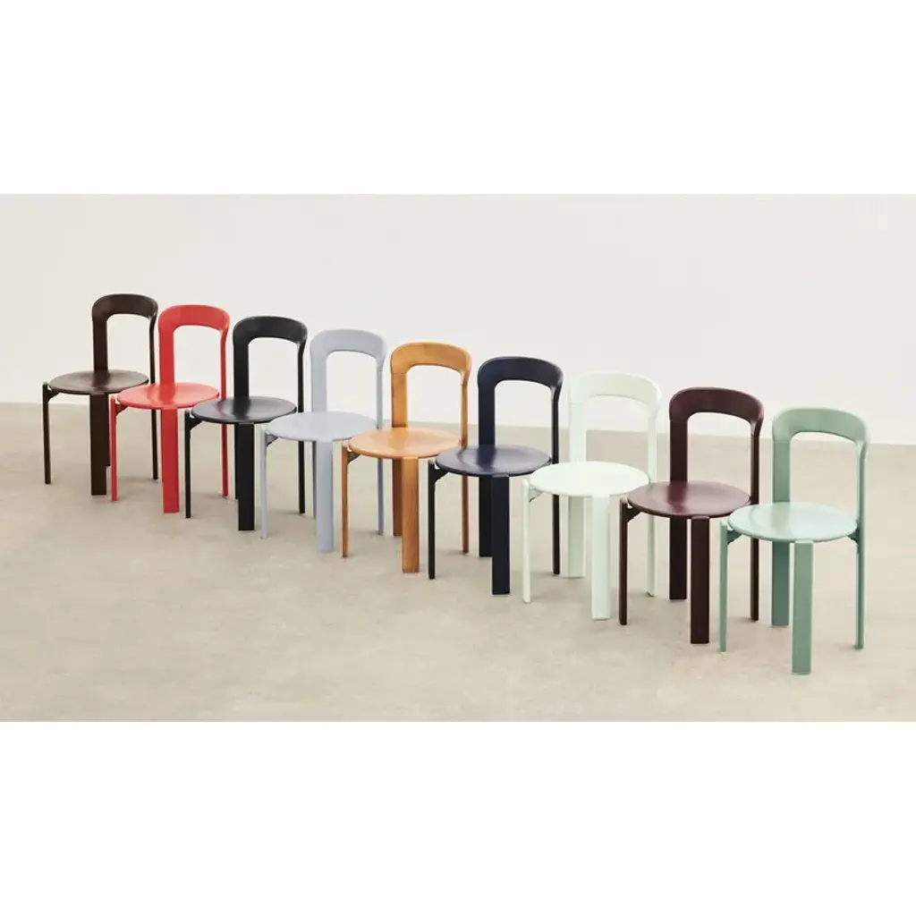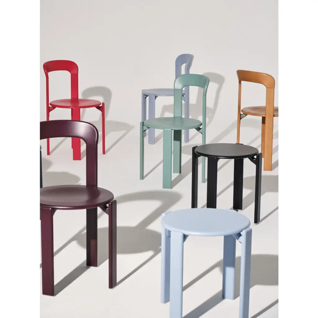 HAY's Rey chair is a fresh reinterpretation of the iconic chair designed by Bruno Rey in 1971. The classic collection, re-invented and re-released in collaboration with the original manufacturer, Swiss Dietiker, charms with its softly rounded lines and simple but detailed design. The timeless appeal of the Rey chair makes it an impressive addition to all spaces private and public alike. In the Rey collection, the wooden frame and seat are combined in an innovative way with die-cast aluminum brackets. The unique mechanism also gives the chair its distinctive look: the seat looks almost as if it is floating, perfecting the robust design with an irresistibly attractive lightness.
