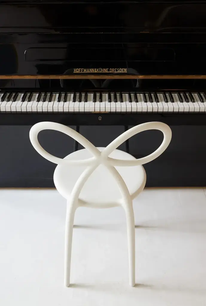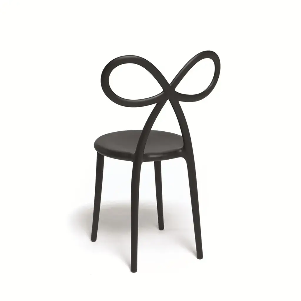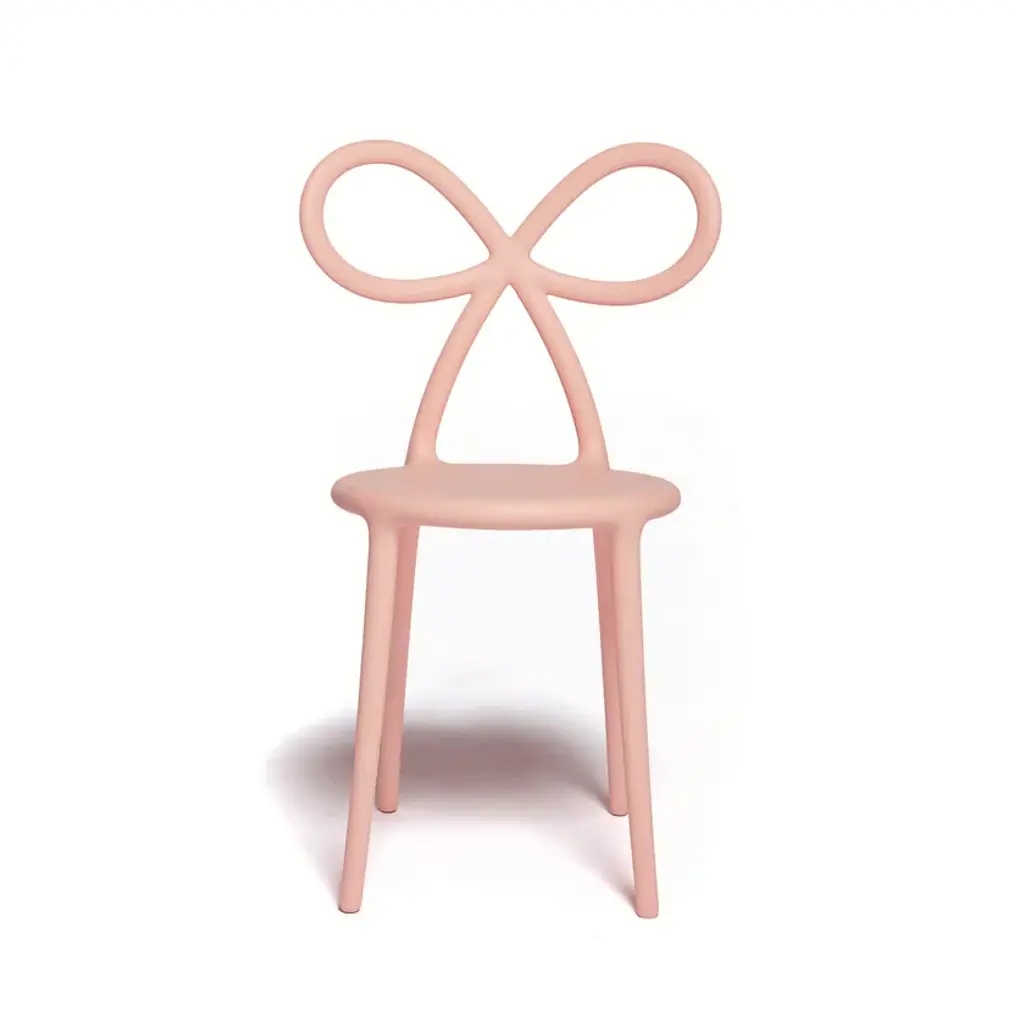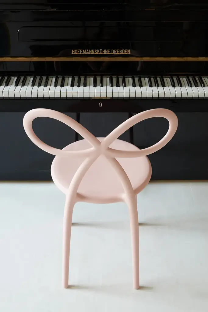 Ribbon Chair, evoking an extraordinarily romantic world, is the feminine chair par excellence.A successful chair, with a strong identity and characterized by a bow designed as a backrest. The bow, a lively symbol of gift and celebration, is translated by the designer with soft, light and essential lines.Colors: black, pink, white