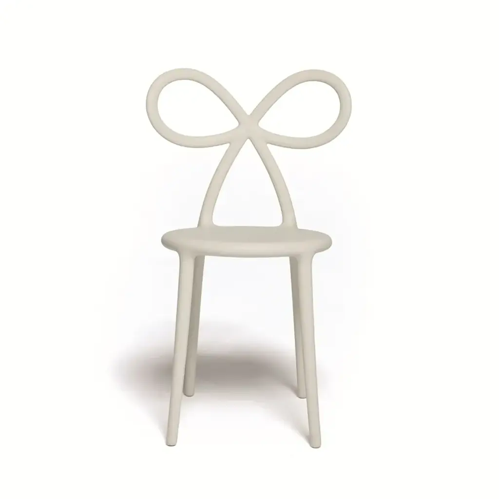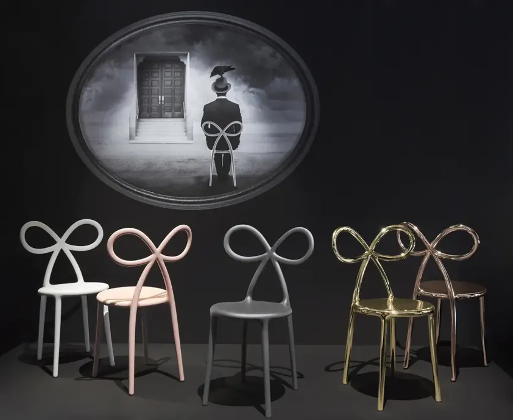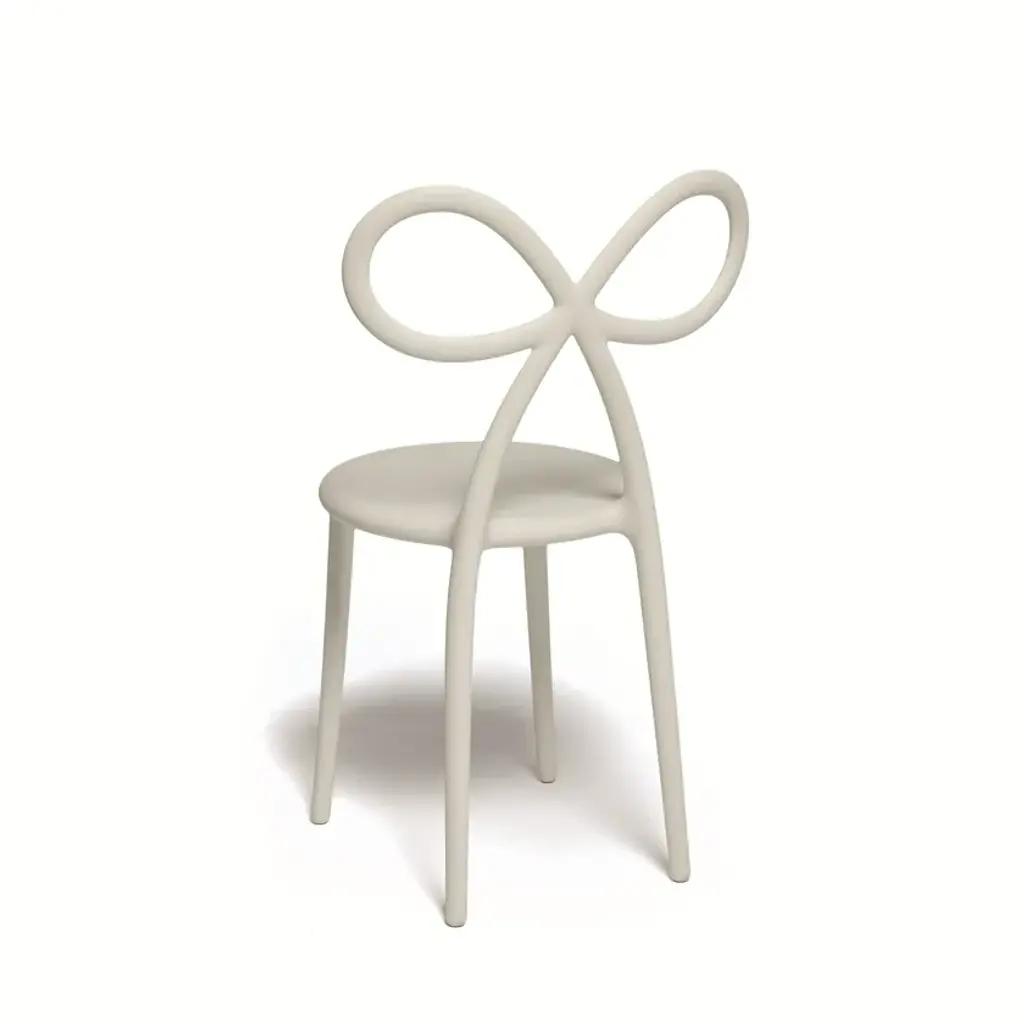 Ribbon Chair, evoking an extraordinarily romantic world, is the feminine chair par excellence.A successful chair, with a strong identity and characterized by a bow designed as a backrest. The bow, a lively symbol of gift and celebration, is translated by the designer with soft, light and essential lines.Colors: black, pink, white