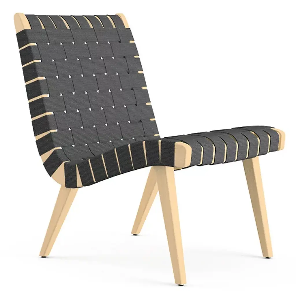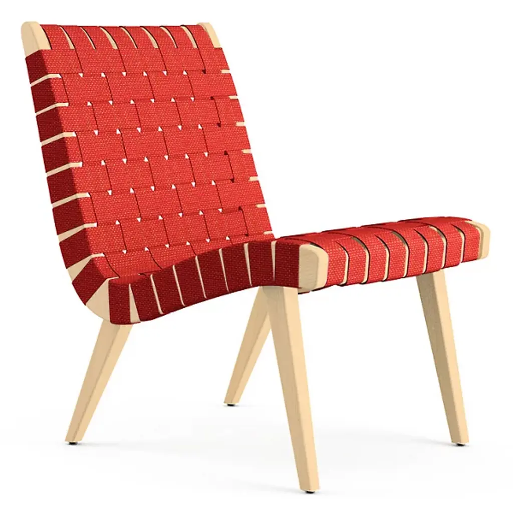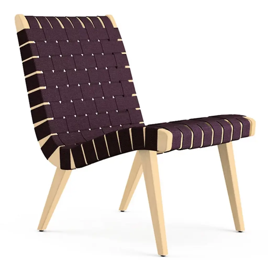The Risom Armless Lounge Chair is beautifully designed chair made for style and durability. The frame is made of pure 100% Mable Wood or Walnut Hardwood giving this chair a very durable sit. The upholstery is webbed beautifully and made with 100% natural cotton. You can relax peacefully knowing the chair is Greenguard Indoor Air Quality Certified for indoor safety. Frame is select Maple or Walnut hardwood