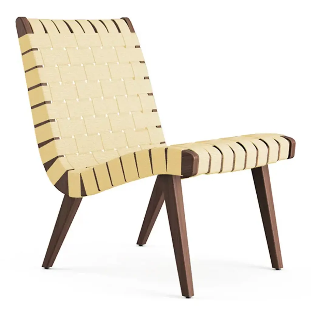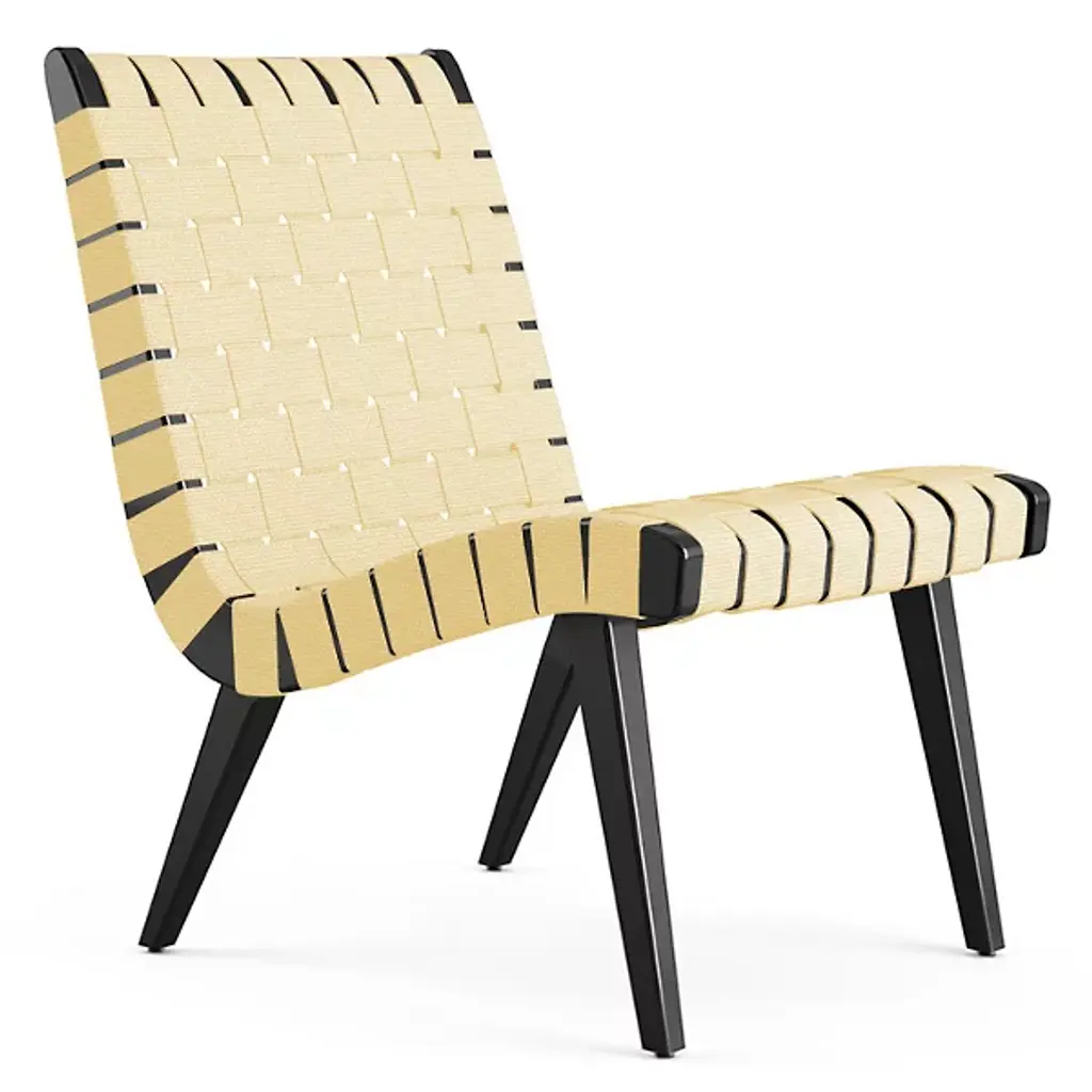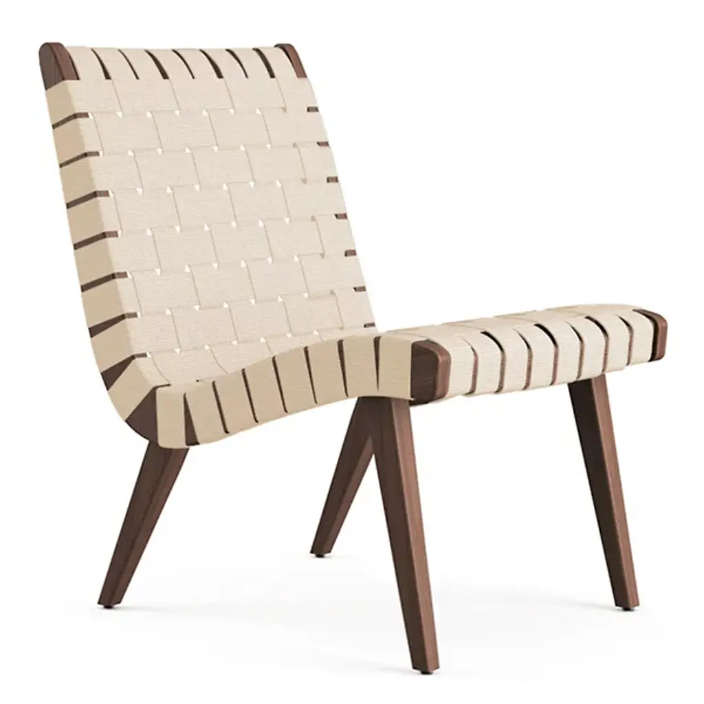 The Risom Armless Lounge Chair is beautifully designed chair made for style and durability. The frame is made of pure 100% Mable Wood or Walnut Hardwood giving this chair a very durable sit. The upholstery is webbed beautifully and made with 100% natural cotton. You can relax peacefully knowing the chair is Greenguard Indoor Air Quality Certified for indoor safety. Frame is select Maple or Walnut hardwood