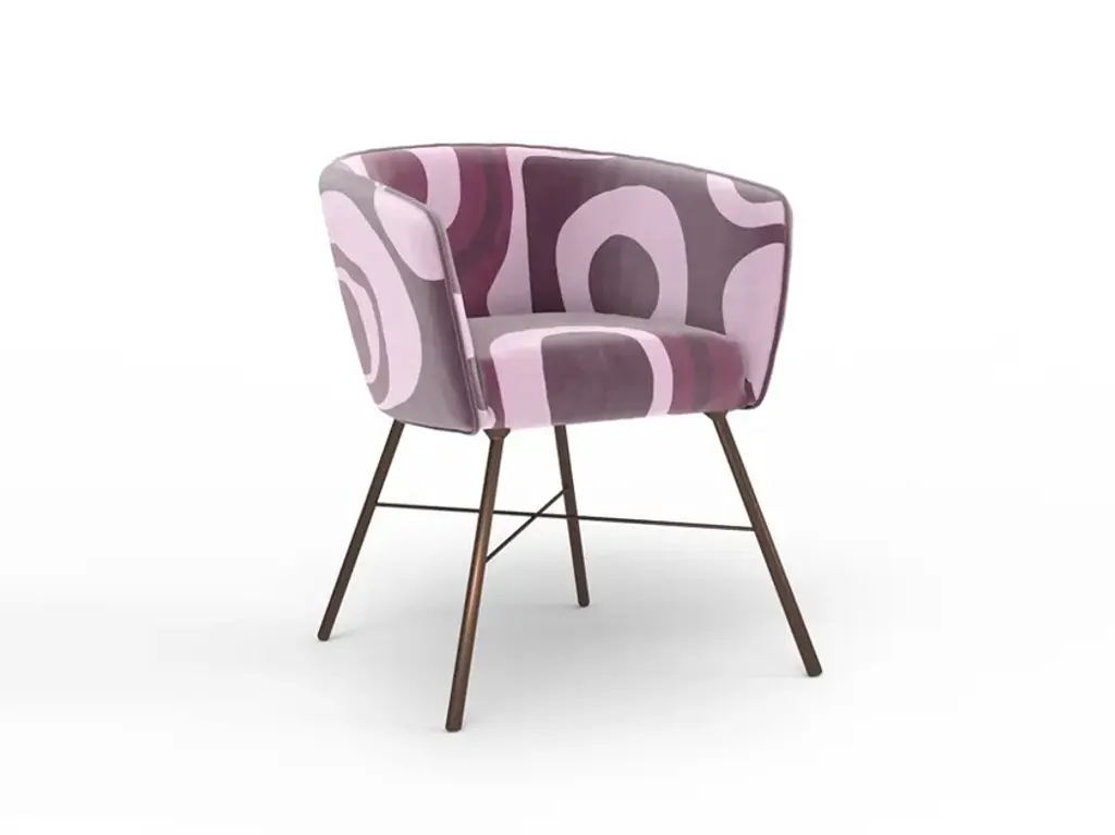 The Rive Droite Chair from Cappellini is a captivating design offering enriched by abstract surface patterns. An open, expressive creation from veteran designer Patrick Norguet, known for fusing high fashion with daring design, this is no exception, ascending from a four-legged base of satin-textured stainless steel. Each leg is a curving single strip that sweeps up to form a cohesive column, bracing a shell-style seat with a vent and wraparound arms fashioned from poplar plywood covered with soft yet supportive polyurethane, and sheathed in a dramatically patterned textile surface that captivates the eye and enhances its surroundings.