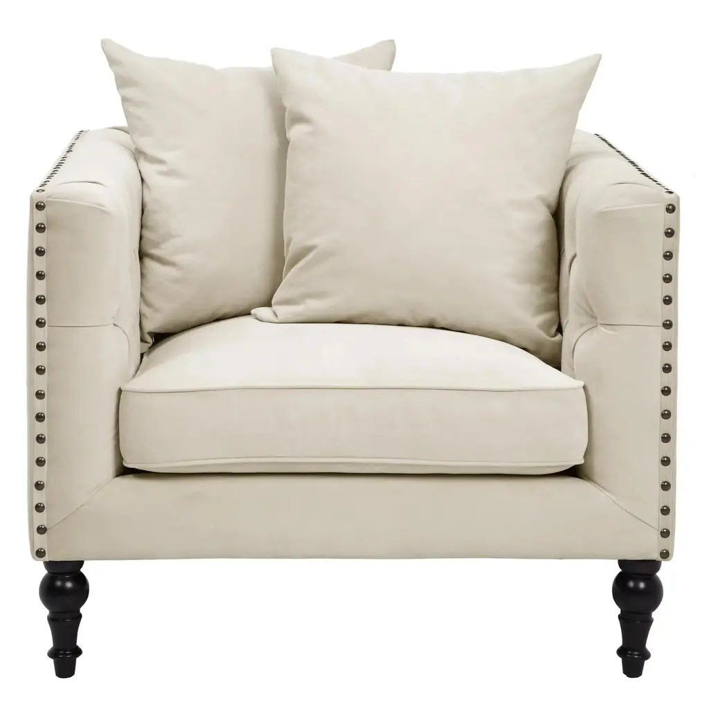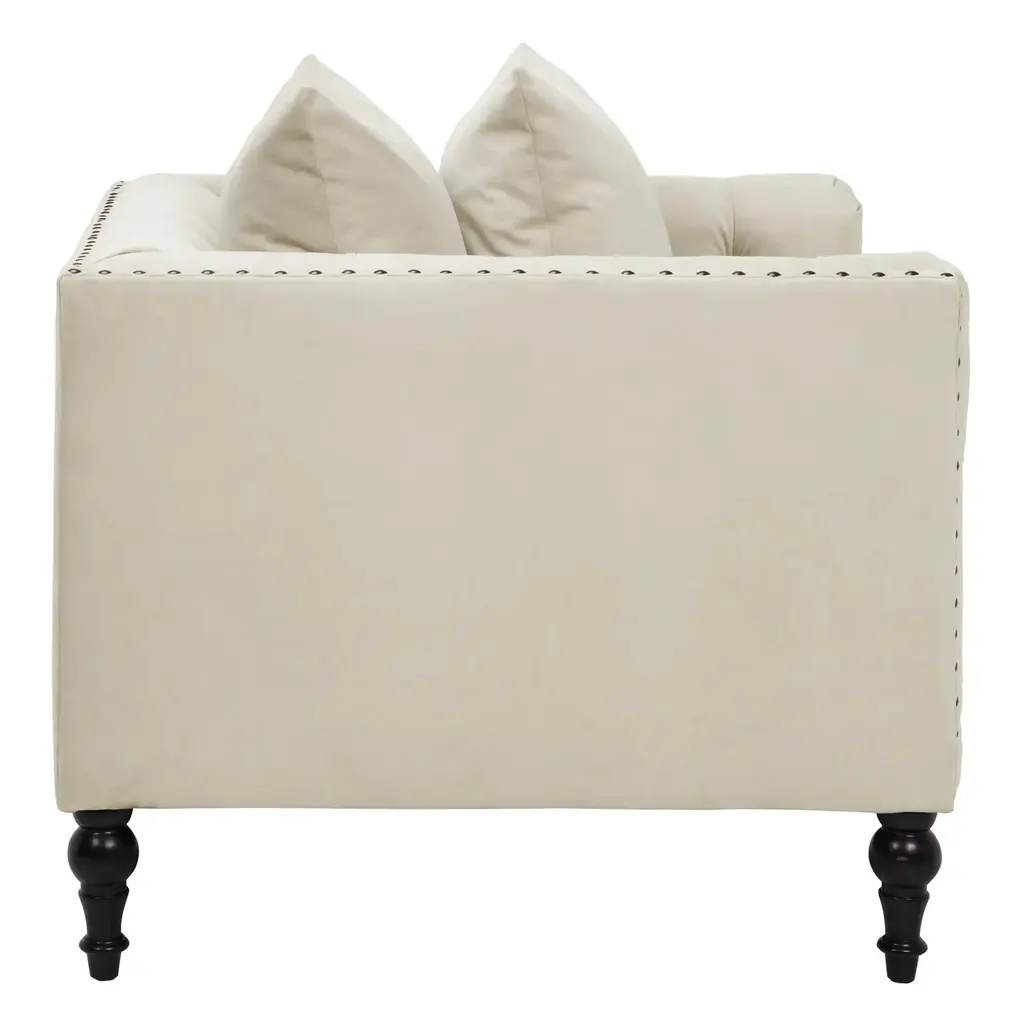 With clean-lined framework, lavish diamond tufting, and graceful turned legs, the pieces in our Roberto Collection deliver stately elegance to any interior. Kiln-dried hardwood frames and plush foam-and-fiber fill ensure long-lasting comfort and support, while hand-applied nailheads along tonal French tape trim finishes the look in high style. Shown in Bella Velvet Pearl with antique brass nailheads.Exclusive to Z Gallerie.Available in 15 fabrics. Custom Orders: Custom Furniture is manufactured especially for you, which is why we do not accept cancellations, exchanges, or returns.