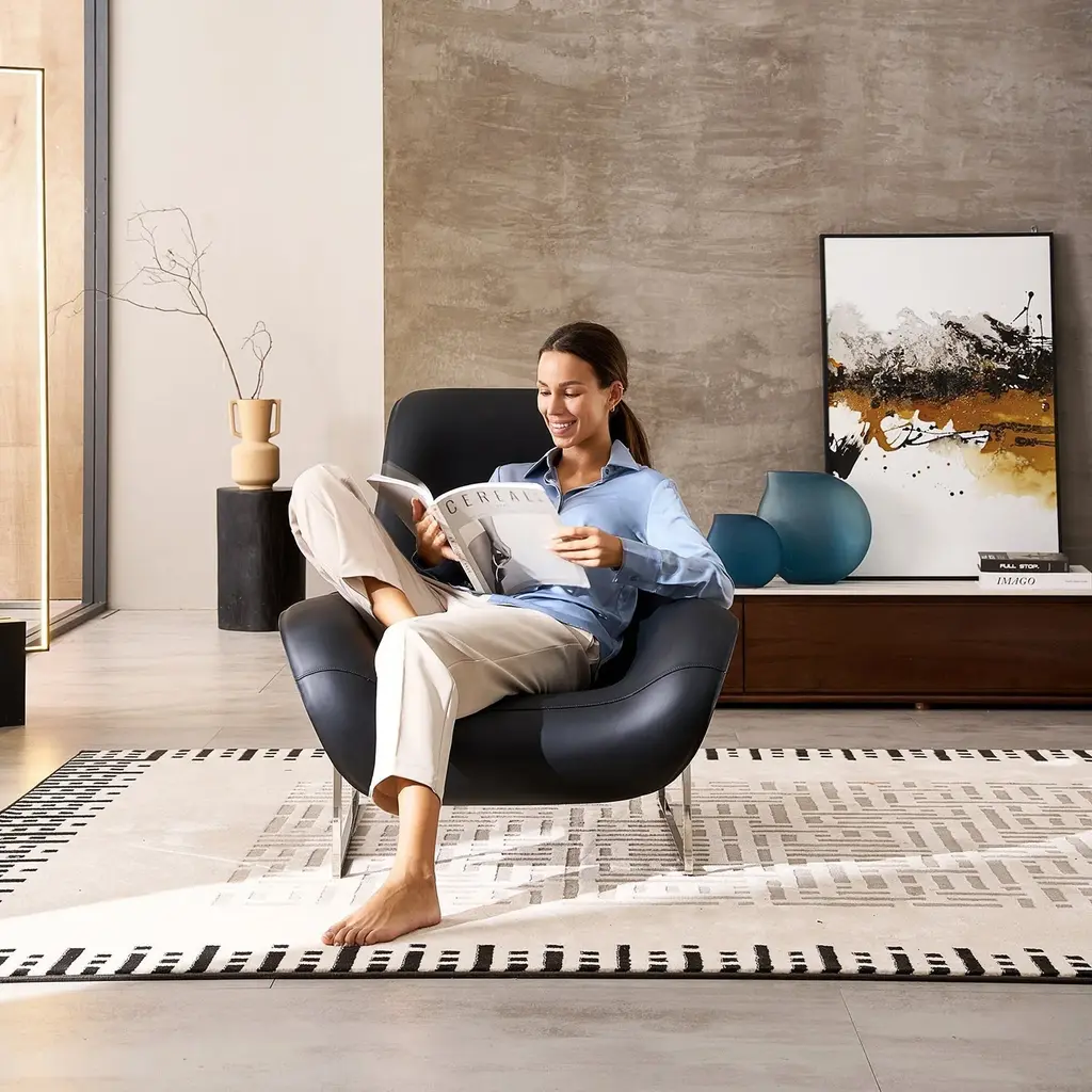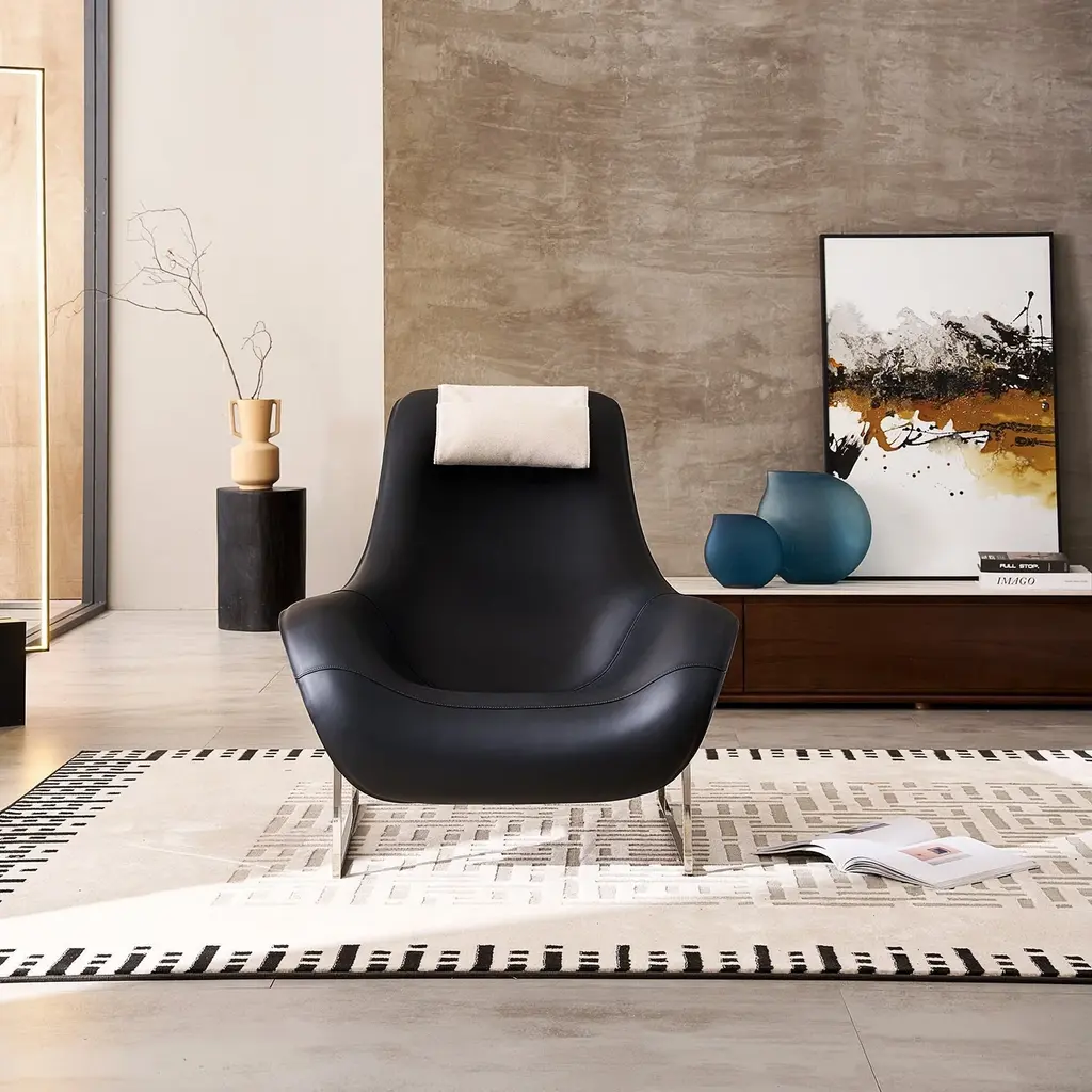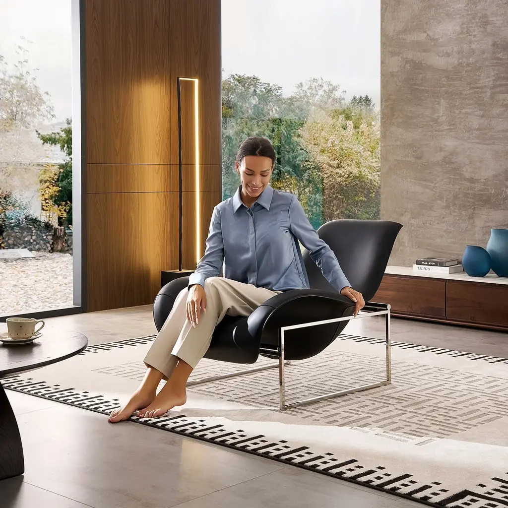 Comfort in CurvesUnique curve design and smooth seat, this chair effortlessly combines form and function. Its sleek design, comfortable seating and having black or brown color option makes it a perfect addition to any room. Rocking Chair in StyleHave the perfect blend of style and comfort with this Rocco Chair that rocks you. Ideal for your reading time or taking a nap, its gentle motion soothes while you relax. Its elegant design adds a touch of sophistication to any room.Sturdy Stainless Steel LegsThis chair has sturdy stainless steel legs that offer both style and stability. Its sleek design and high-quality materials make it perfect for providing both comfort and relaxation.