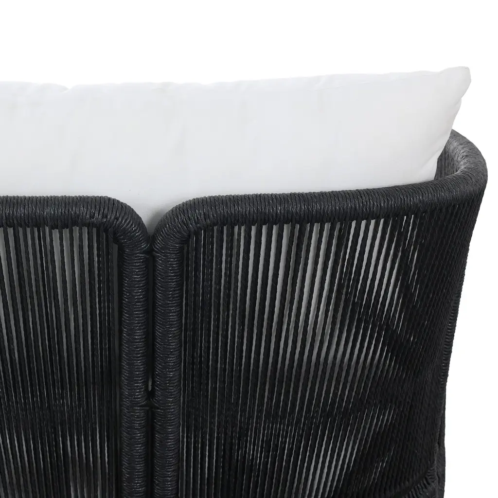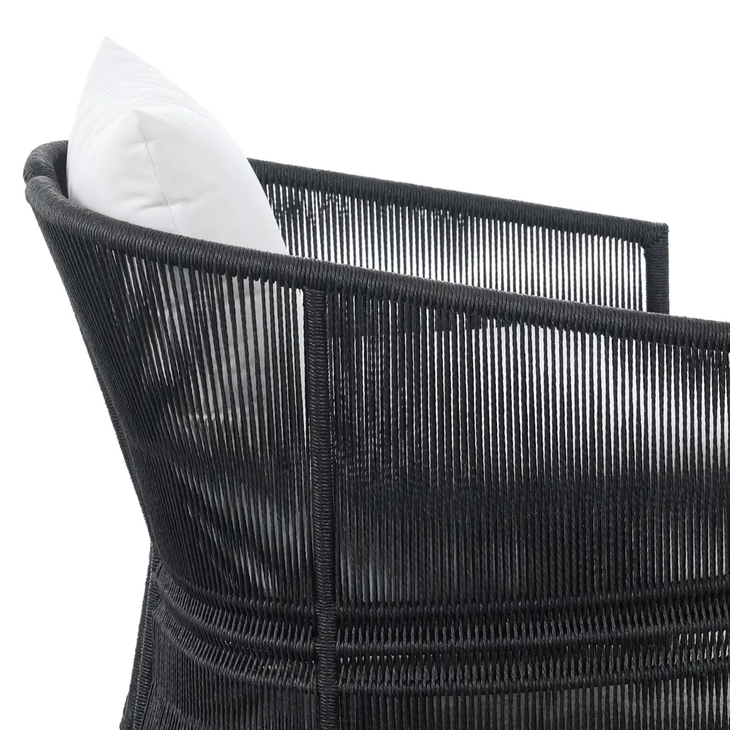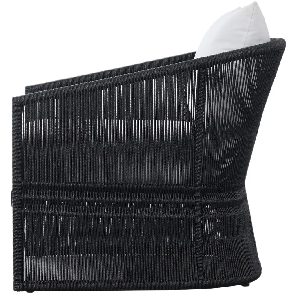 The Rosehaven Outdoor Chair is a stunning spot for outdoor lounging. Its linear rope-based design is beautifully woven and paired with clean curves, creating an elegant aesthetic. The chair features an angular cutout detail on the back, ensuring it looks stunning from all angles. The back and seat cushions are UV-resistant, water-repellent, and quick-drying, making it perfect for outdoor use. For longevity, cover or store indoors during inclement weather and when not in use.
