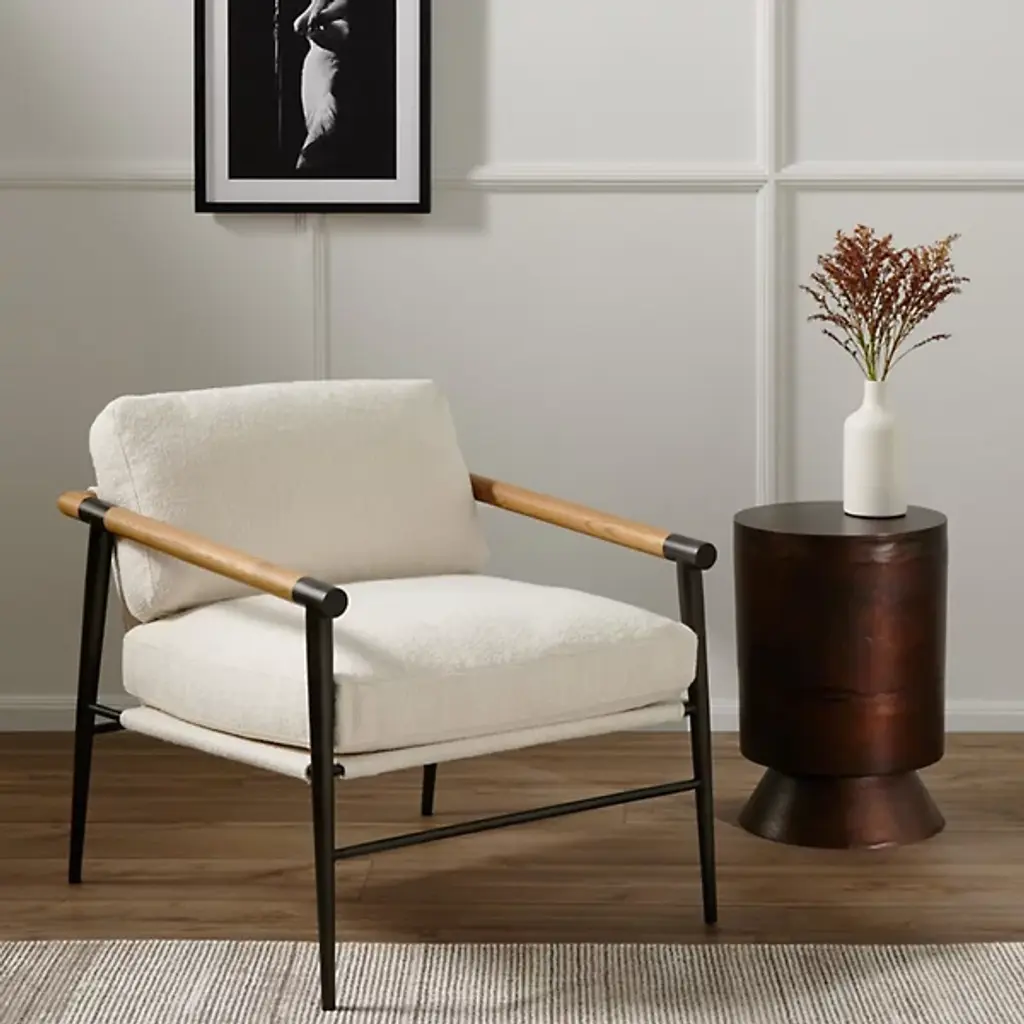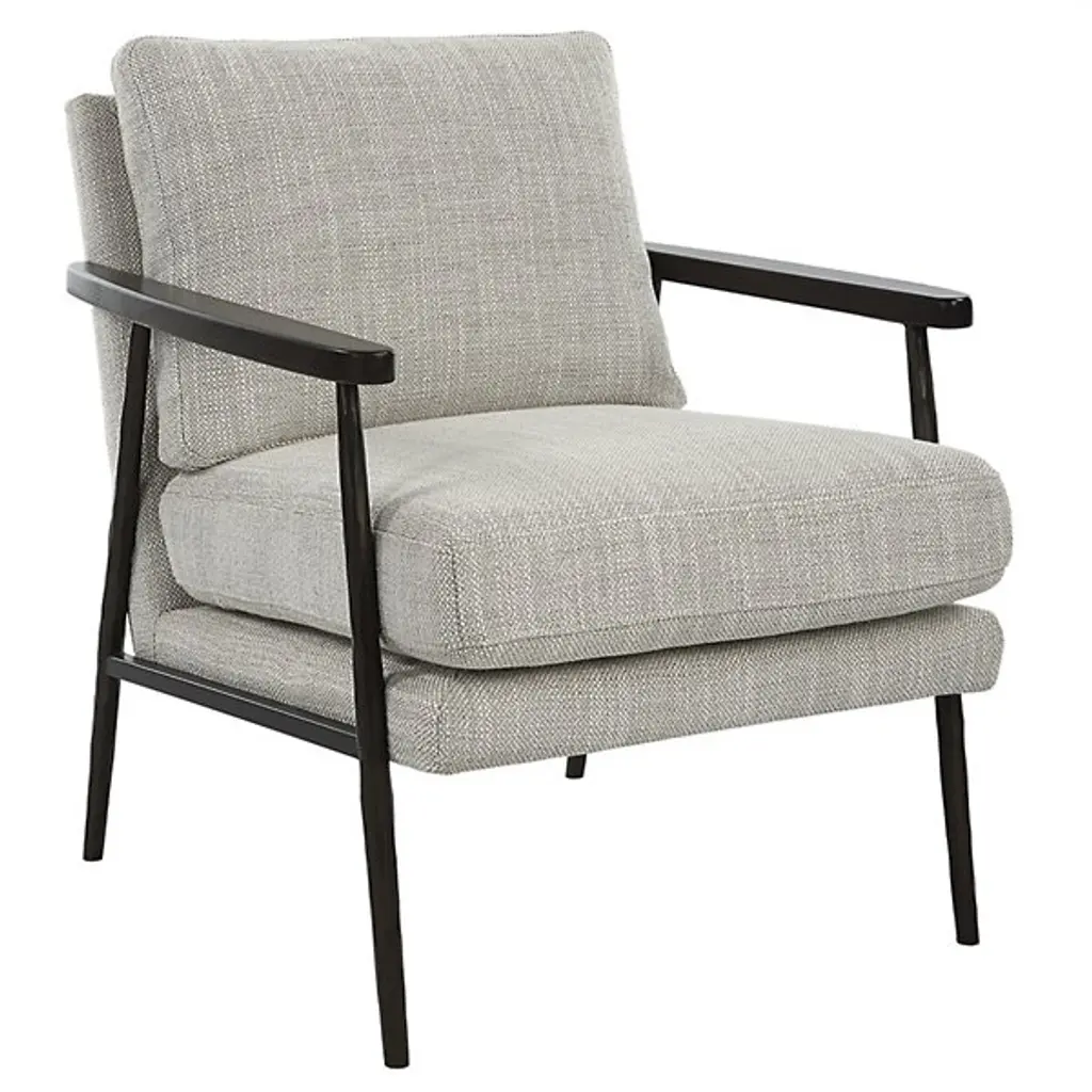 The Rowen Chair is presented by Four Hands. It features a textural upholstery that is comfortable and inviting. It softly contrasts against the angular wooden arms and framing, which provide a modern and industrial-influenced aesthetic. It has been fashioned with a high-performance fabric, perfect for public and private settings alike. Place the Rowen Chair in a VIP lounge for added style or provide comfort to a waiting room lobby.
