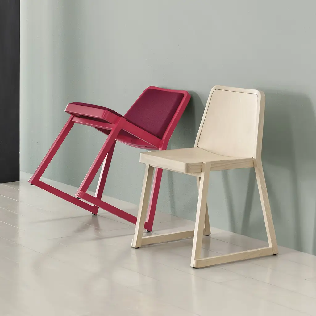 A minimalist and ergonomic design by Emilio Nanni, the Roxanne Chair is distinguished by two imaginative legs shaped like a trapezoid firmly sustaining a comfortable seat with a backrest. Entirely handcrafted of bleached wood, it is available in other colors. Please inquire with the Concierge for more details and for options of colors and finishes.
