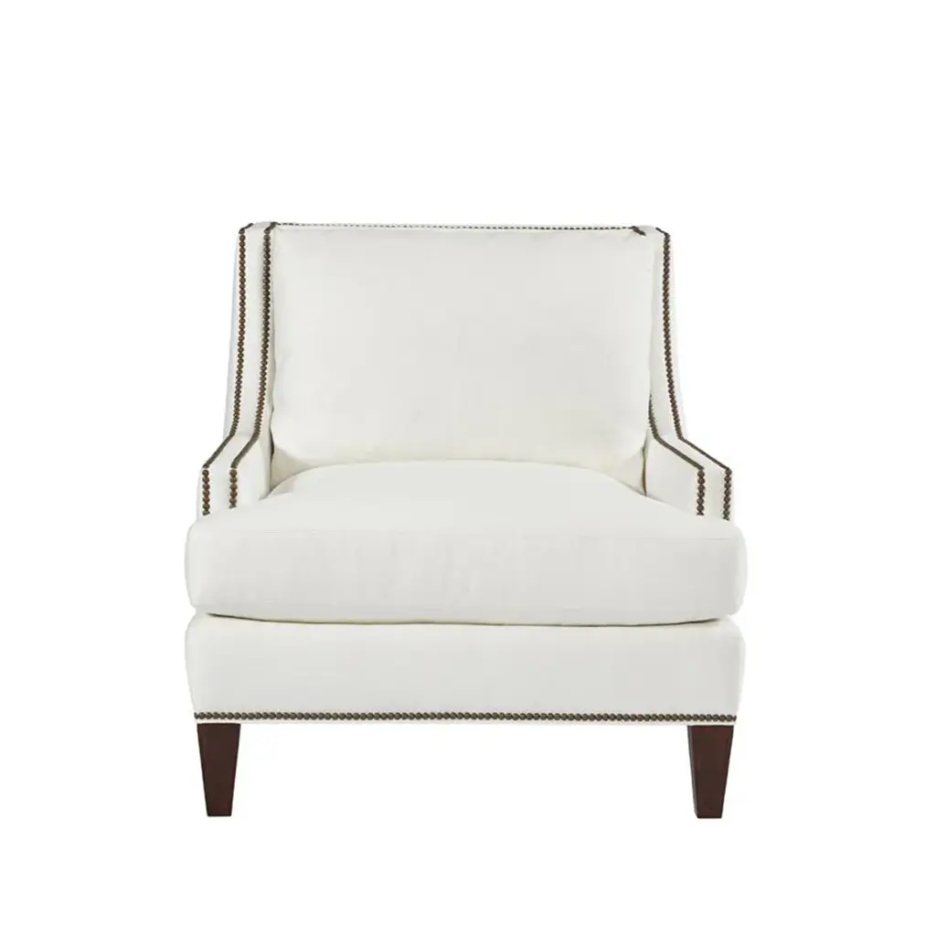 The Royce collection also includes a sofa (sold separately). Ships In 8-10 Weeks One loose back pillow One loose seat cushion As Shown Fabric: Glynn Natural As Shown Finish: Antique Walnut If you choose to purchase COM, once you have placed your order a customer service rep will contact you regarding where to send your fabric. Please note that current lead time is 17-19 weeks once your fabric arrives at the factory, and if unused fabric is under 1.5 yards, it cannot be sent back to you.This product can be special ordered in additional fabrics, leathers, finishes, and cushion fillings. Click here to email us for for additional information about special ordering.This image is for illustrative purposes only. The colors shown are accurate within the constraints of lighting, photography, and the color accuracy of your screen.