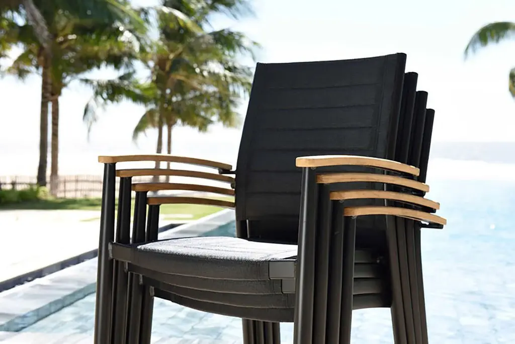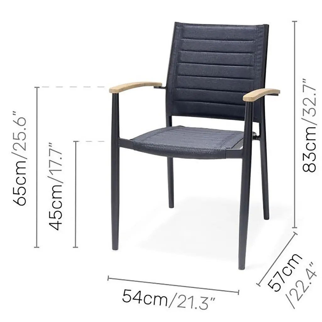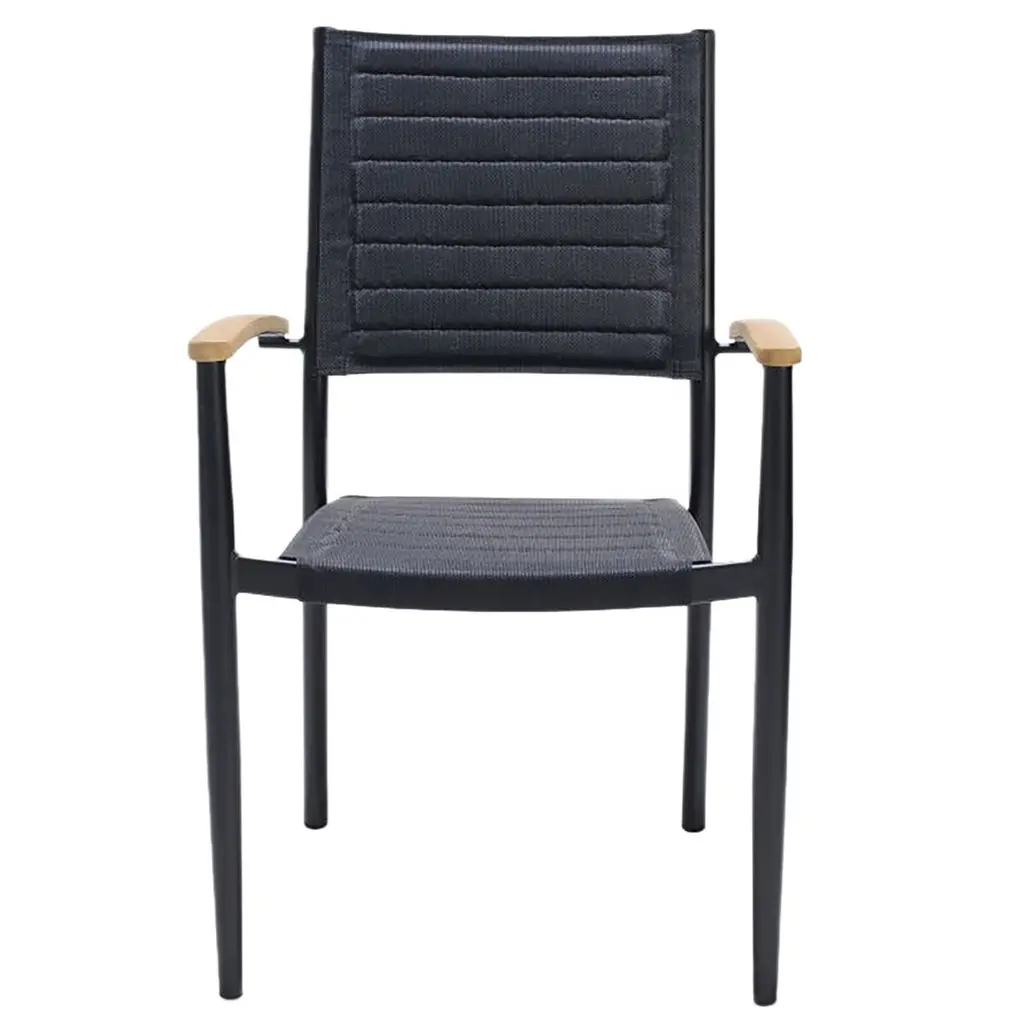 S/4 Dalston Outdoor Teak Stacking Arm Chairs, Black/natural