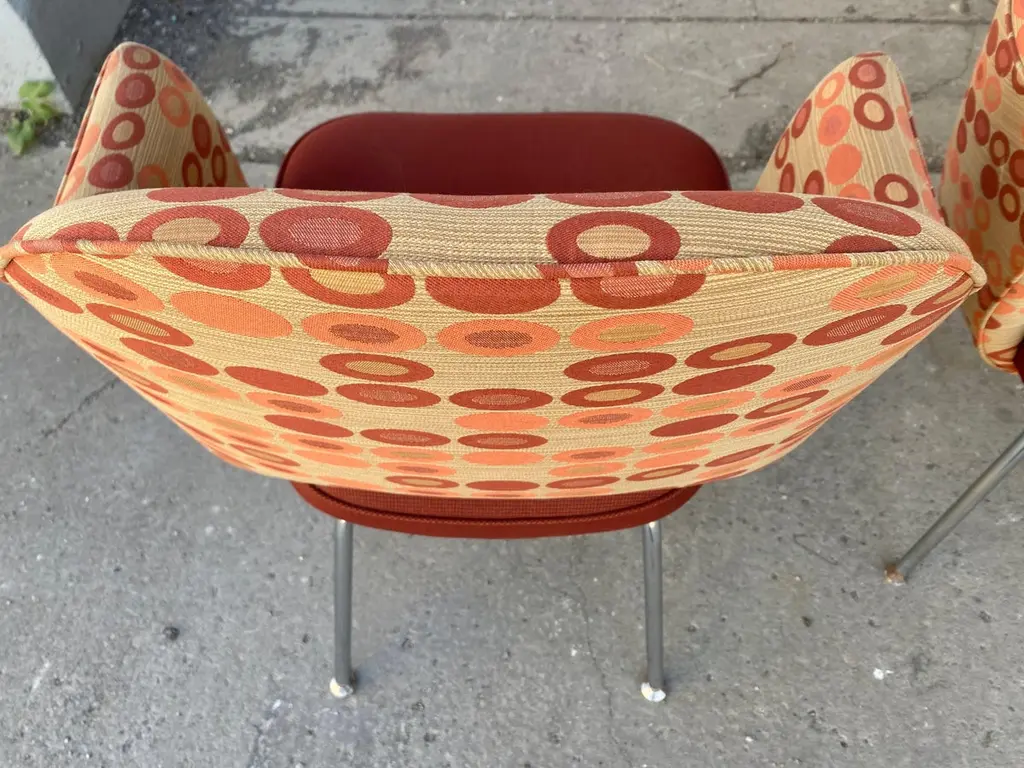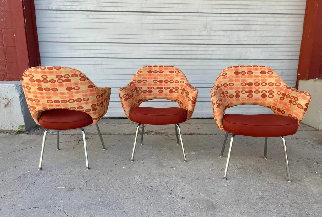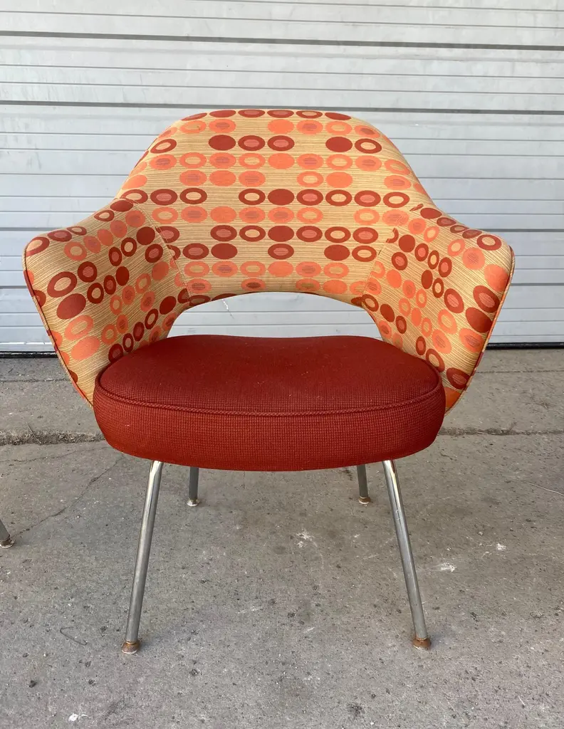 Eero Saarinen for Knoll executive arm chairs in custom order contemporary fabric.