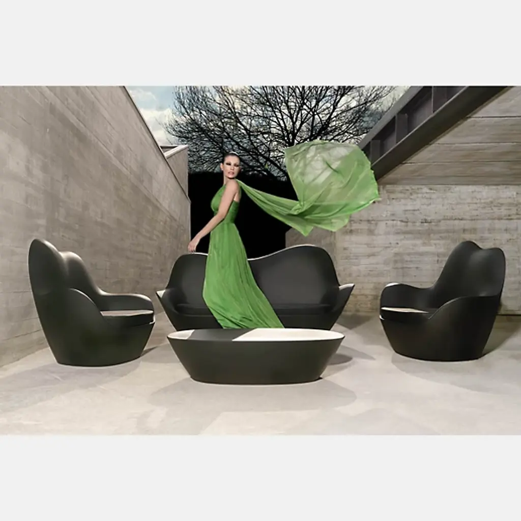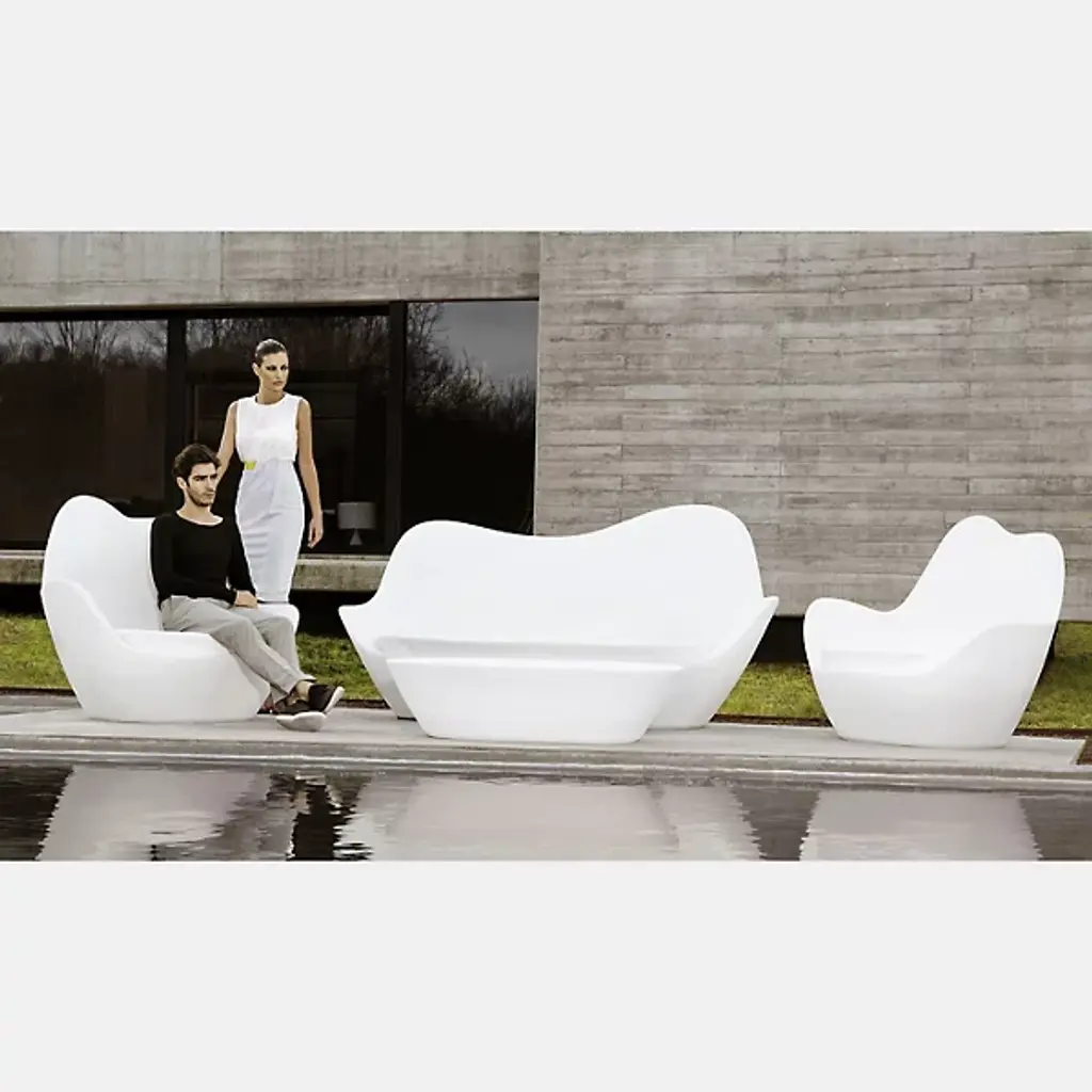 Gentle like the flowing visuals of a sand dune. Let your body melt into the delicate curves of the Sabinas Lounge Chair from Vondom. The chair treats the eyes to a fluid, sculptural design. Either inside or outside, the chair creates a relaxed atmosphere in its charming silhouette. Nestle inside and feel the sweeping curves of the connected back and armrest wrap your contours. The wide seat rest gives you plenty of space to rest your legs comfortably. With a polyethylene resin construction, the chair offers a smooth feel throughout and robust weather-resistant properties.