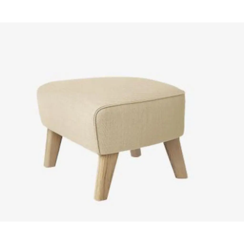 Sahco Zero 6 my own chair footsool by LassenDimensions: D 58 x W 56 x H 40 cm Materials: Textile, natural oak, Also available in different colours and materials.Weight: 18 KgThe my own chair footstool has been designed in the same spirit as Flemming Lassen’s original iconic chair, reflecting his love of rounded shapes, simple forms and precise detailing, to enable the full relaxation effect.By Lassen is a Danish design brand focused on iconic designs created by Mogens and Flemming Lassen, founded by Lassens’ relatives in 2008. Brothers Mogens (1901-1987) and Flemming (1902-1984) Lassen are known as two of Denmark’s greatest architects and designers. Both were renowned pioneers of Danish functionalism and modernist architecture, honoured with numerous prestigious medals and awards. Headed by Mogens Lassen’s grandson Søren Lassen, by Lassen carries on the brothers’ design philosophy by manufacturing their iconic designs as well as products by other designers that complement the Lassen’s functionalist style. The company’s mission is to continue the tradition of timelessness, functionality and quality, and to introduce the Lassen’s design heritage to new generations.