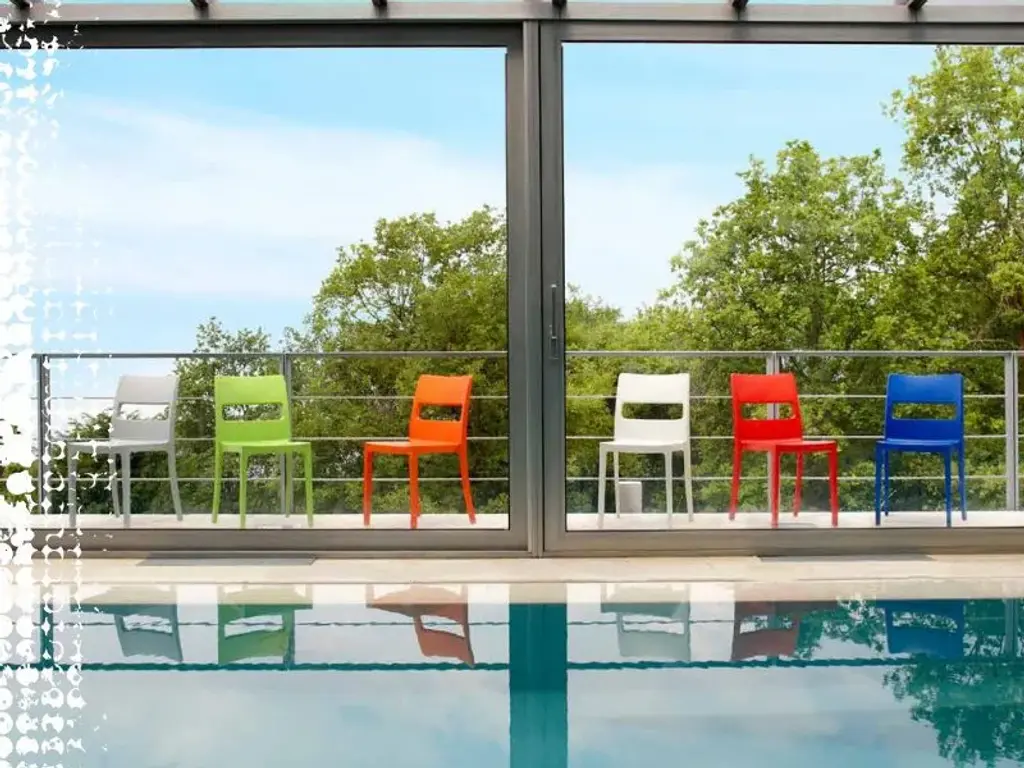 SAI is a stackable chair with air moulded polypropylene frame, reinforced with fibreglass.Available in several colours. For indoor/outdoor use.Colours: linen, dove grey, yellow, orange, red, pistachio green, blue, light blue, cocoa, terracotta, anthracite. Also available in fireproof technopolymer in the colours: linen, yellow, orange, red, light grey.Available in the GO GREEN version, in: dove grey and air-force blue.In the GO GREEN collection, the item is made of plastic obtained by the regeneration of end-of-life products and waste coming from recycling, certified as recycled and obtained using energy generated from renewable sources. This triggers a virtuous process: new plastic is not introduced into the environment and at the same time potentially polluting waste is recovered.PURCHASE INFORMATION : Price includes 6 pcs. with the same configuration.
