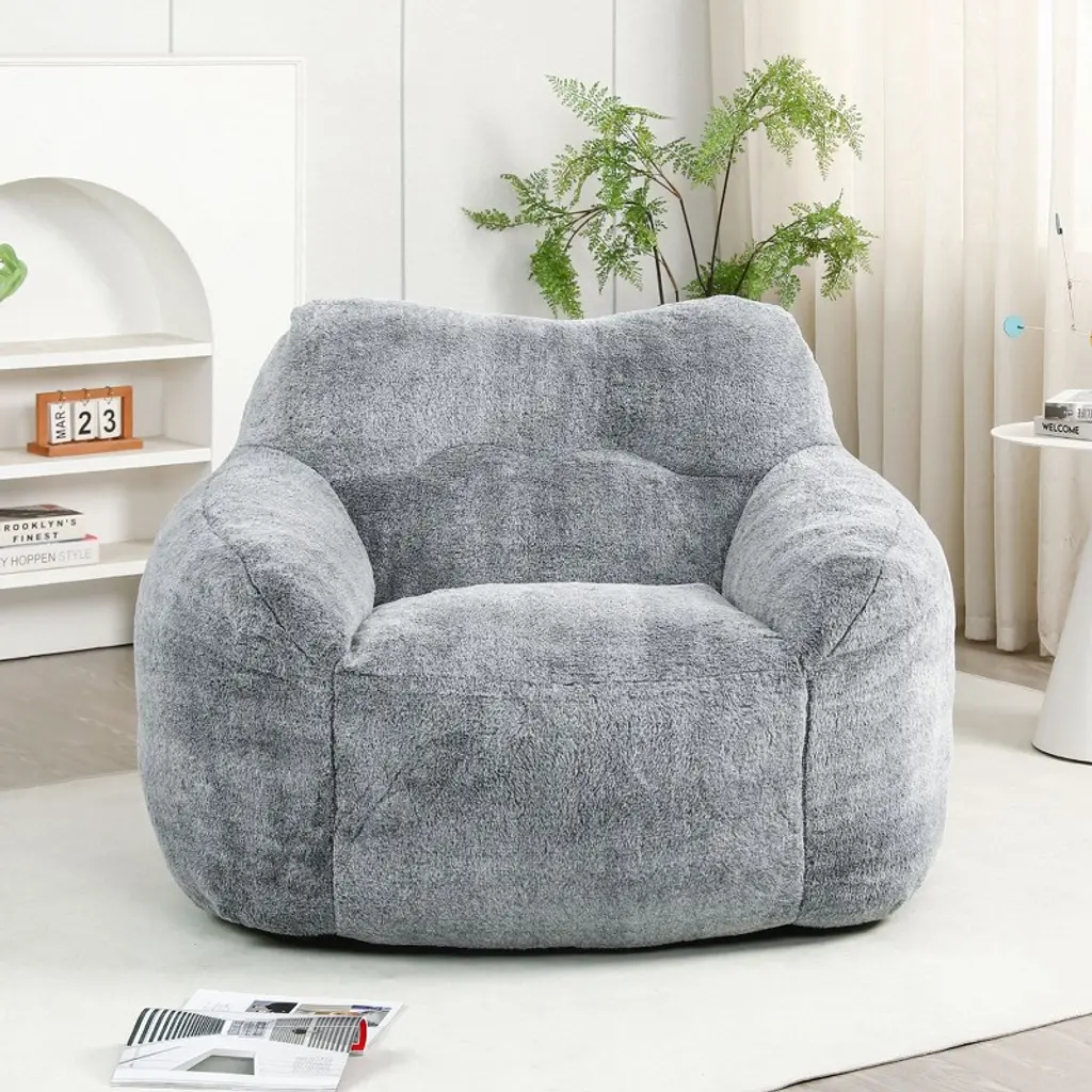 Sapphtopaz Bean Bag Chair With High-density Foam, Lazy Sofa With Armrests, Bean Bag Chairs For Adults And Kids, Lounge Chair For Living Room, Gray