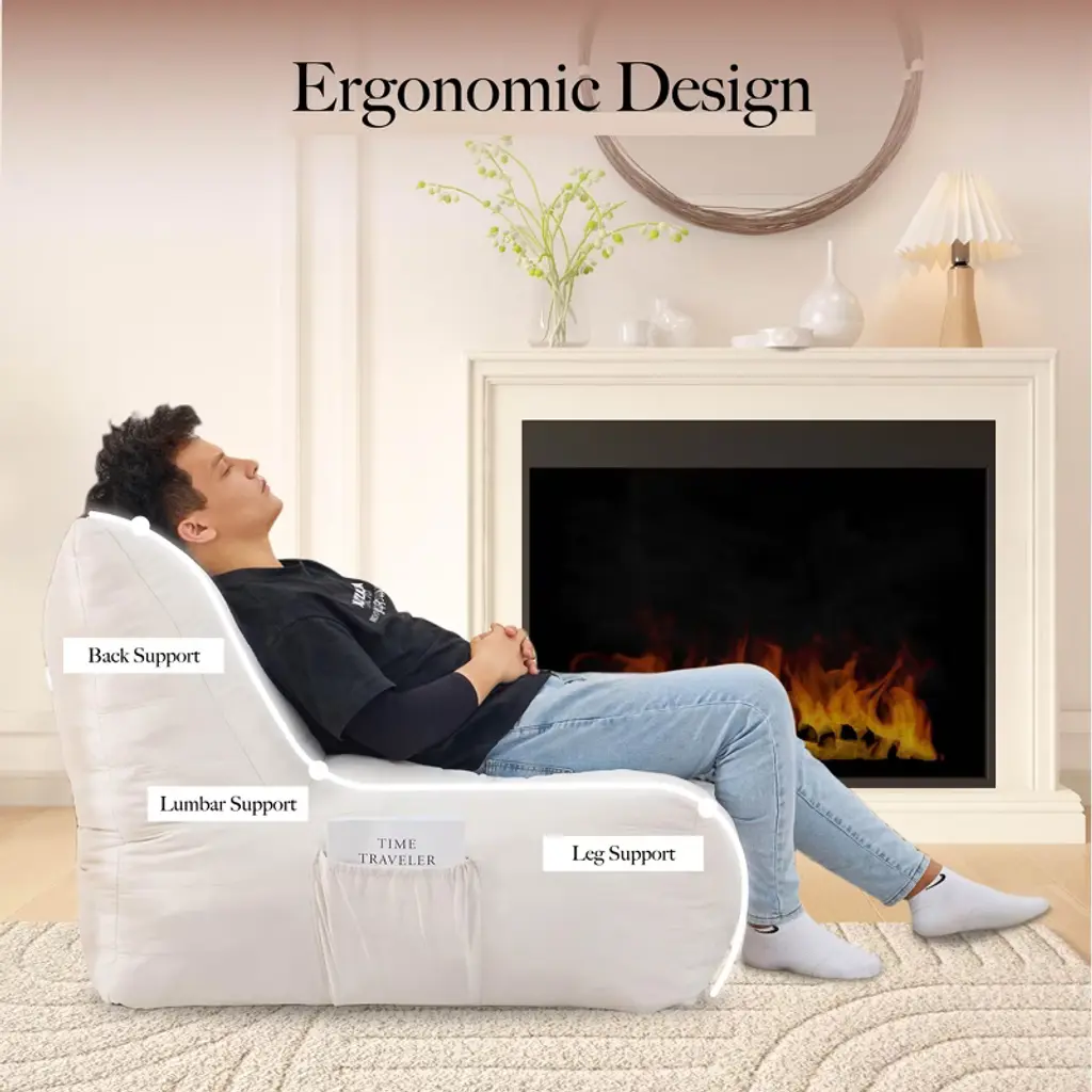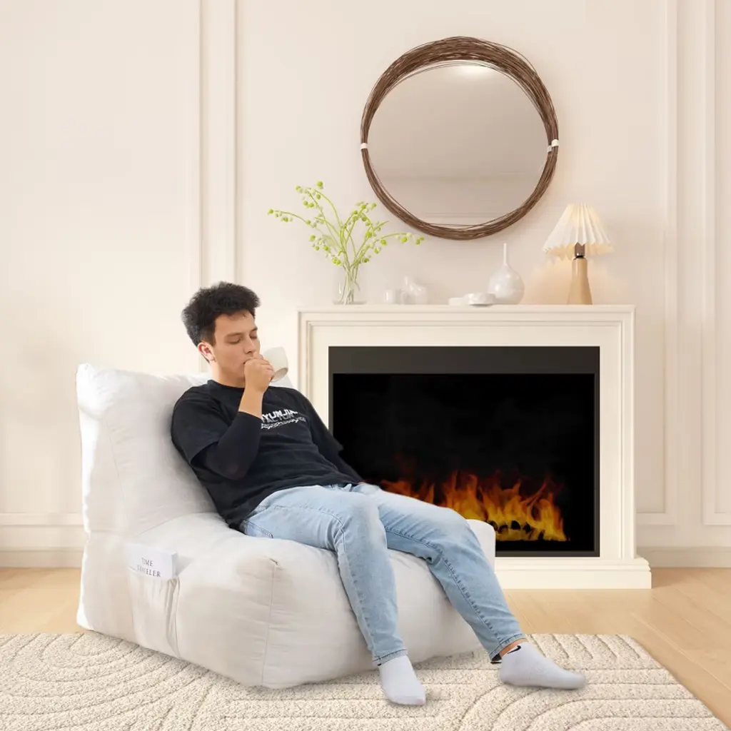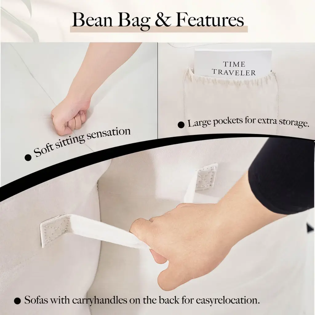 Sapphtopaz Suede Bean Bag Chair With High-density Foam, Comfy Lazy Sofa With Backrest For Adults And Kids, Cute Cloud Couch For Living Room, White