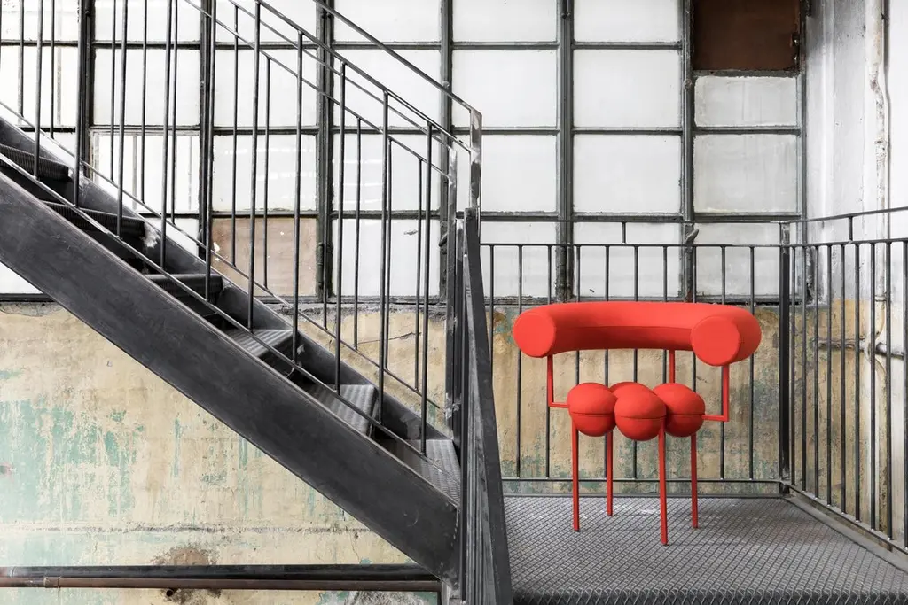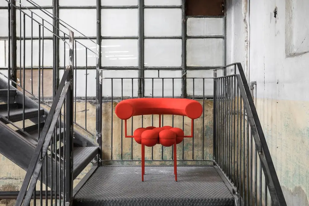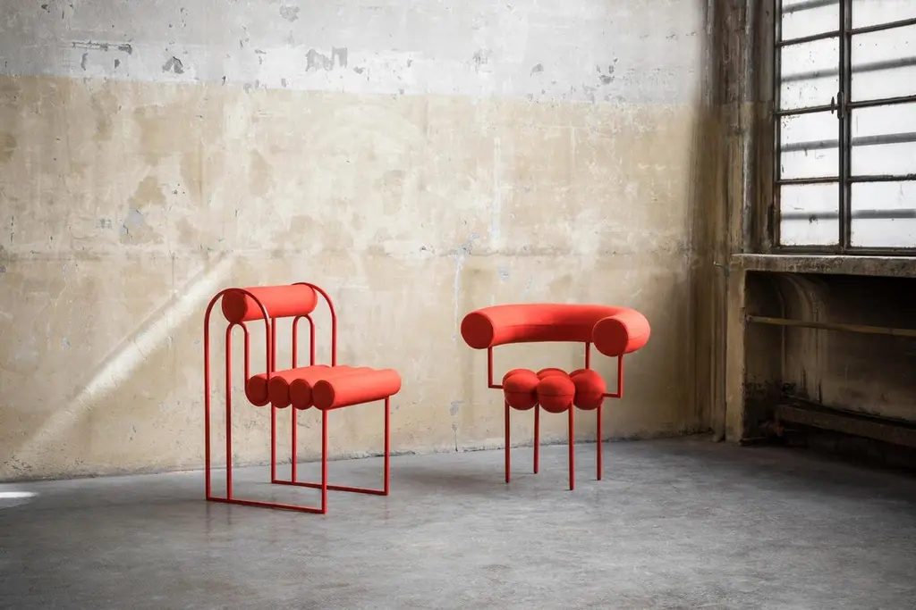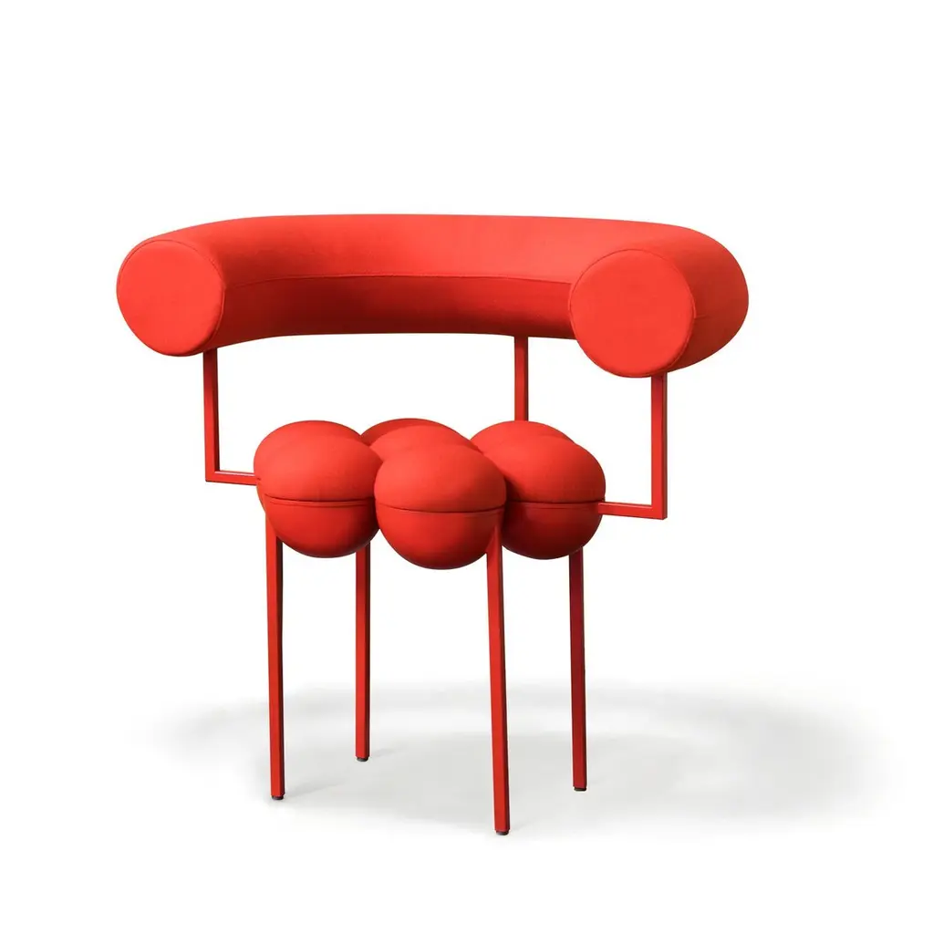 Saturn Chair, Red Coated Steel Frame And Red Wool By Lara Bohinc