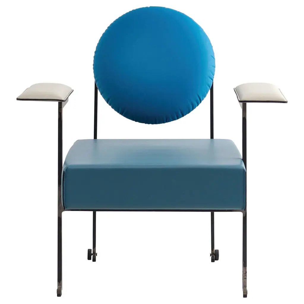 The distinctive Saturn chair is a return to the split sphere concepts Bohinc originally created for her jewellery collections such as Sun and Moon (2007) and Solaris (2012). This form has now been evolved to create bilboquet style ball and cup sections, which are grouped to make an undulating chair seat. The lower semi sphere metal constructions cradle the soft upper spheres of Bohinc’s now trademark plump and deep upholstery. A semi-circular ring seems to float above the seat, providing one commodious back and armrest, fixed to the seat with delicate metalwork. With sustainability increasingly shaping the design world, at Bohinc Studio we rely on durable design solutions.?‘In order to be environmentally friendly, pieces have to be either durable or made from materials that can be fully recycled and transformed completely into new products’, says Lara Bohinc, whose furniture for Bohinc Studio is predominantly made of metal. ‘Metal is not only long-lasting, it can also be reused infinitely. With its inherent longevity and durability, metal is viable from both economic and environmental point of view, making it one of the only truly eco-friendly materials to make furniture with. No other material can be used over and over again to produce such long lasting usage.’ The chair is made in powder coated steel and Italian wool fabric. The chair is made by hand in Portugal.Each piece of furniture is individually numbered and comes with a signed "Certificate of Authenticity" to prove that it is Bohinc Studio original.Material: powder coated steel and Italian wool fabricDimensions: 460 x 460 x H 690 mm.