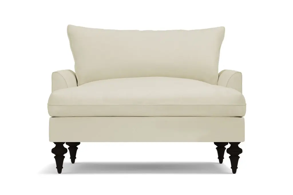 Get down with the Saxon! No, literally- this transitional sofa collection that brings a modern twist to shabby chic features ultra-plush down seat cushioning, making it our coziest sofa collection to date! A deep bench seat great for curling up and a classic turned leg highlight the high end design. And, it's framed by a very cool knife's edge trim on both the seat and back cushions (it's called a flange. Yeah we said it!).