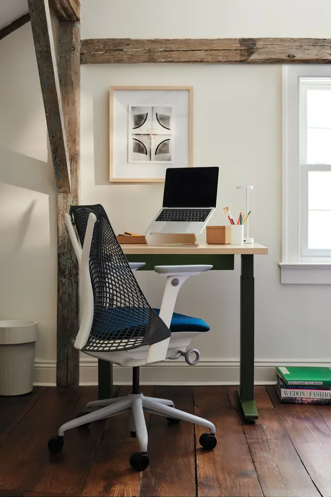 Inspired by the Golden Gate Bridge, the Sayl work chair makes a big impact with a small footprint. Its unique unframed back features elastomer strands that are stretched to provide the greatest tension where support is needed and less in areas that benefit from a greater range of motion. Speaking of motion, Sayl also features Harmonic Tilt technology, offering sitters a sense of balanced movement and support as they make moves throughout the workday. Plus, with no PVCs used, Sayl is up to 90% recyclable at the end of its long life.