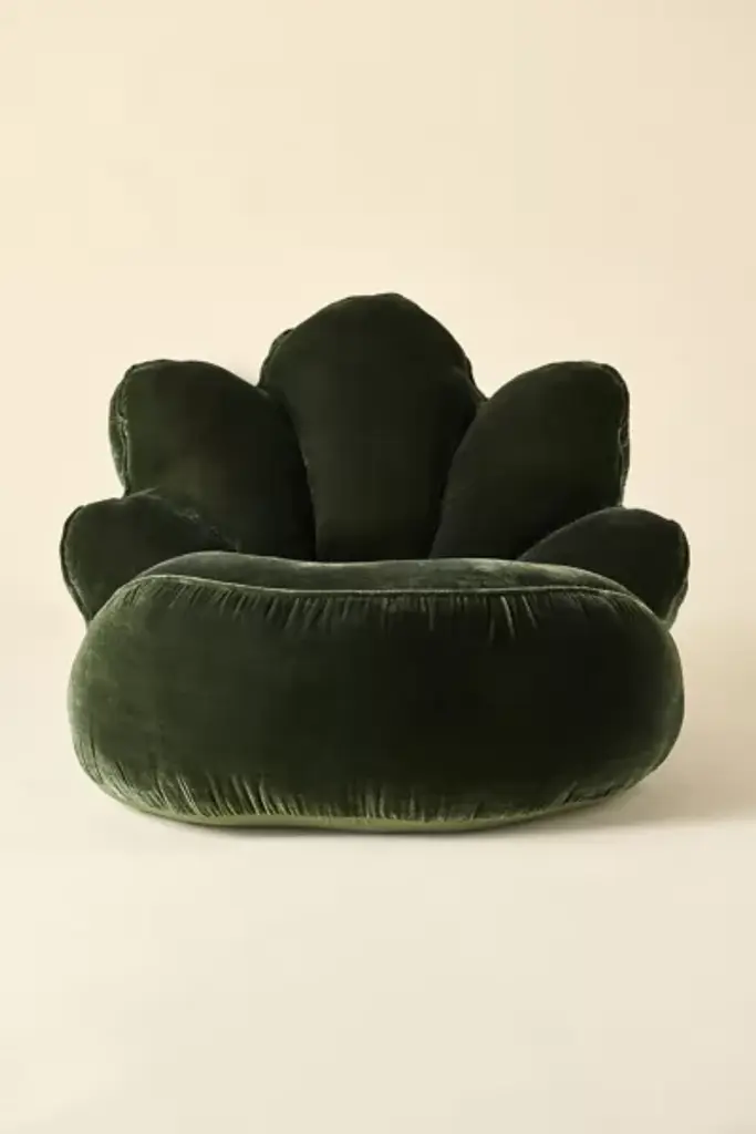 The perfect dorm room furniture to create the coziest home away from home, this plush velvet bean bag features a scalloped backrest with an overstuffed seat that’s so comfy. This supportive seat features a plush backrest with scalloped edges at the top. Upholstered allover in luxuriously soft velvet. Available exclusively at Urban Outfitters. **Features** \- Scalloped Seashell Bean Bag Chair from UO Home \- Cozy dorm room furniture \- Made in part with recycled filling \- Allover cotton velvet shell for a luxurious & cozy feel \- Perfect for creating additional seating \- One-of-a-kind, each chair has slight variation in weight from hand-filling \- UO exclusive **Content + Care** \- Polyester, cotton, recycled polyfiber fill \- Spot clean \- Imported **Size** \- Dimensions: 33"l x 26"w x 12"h \- Weight: 20.3 lbs \- Shipping package dimensions: 28"l x 28"w x 35"h \- Shipping package weight: 23.3 lbs