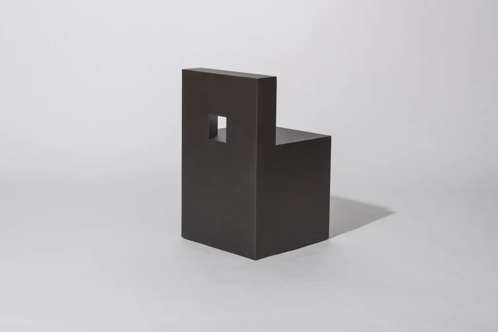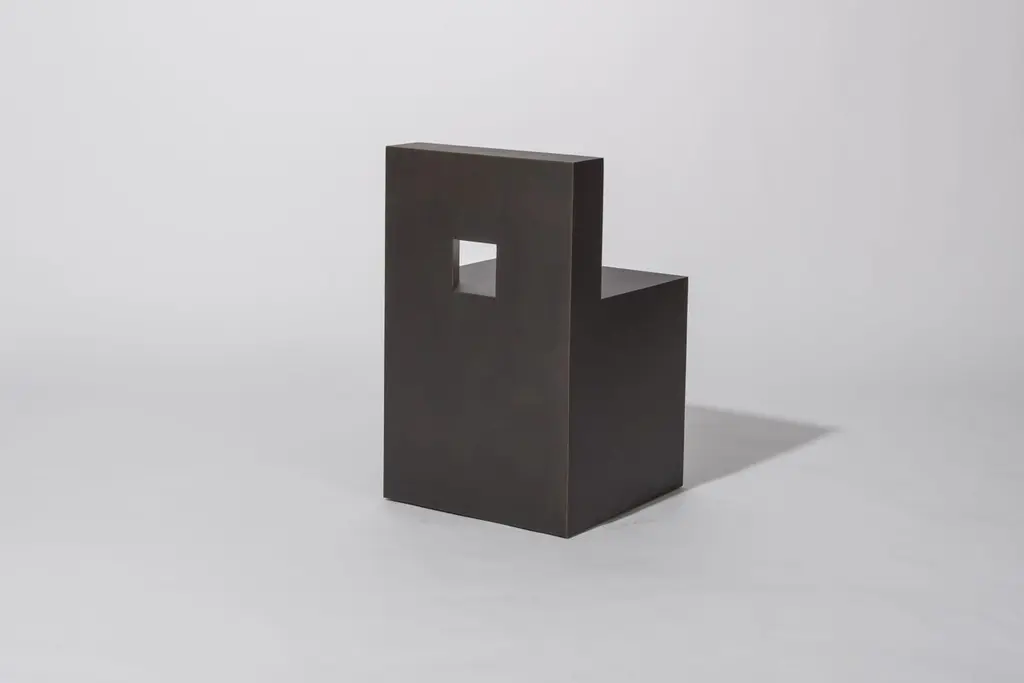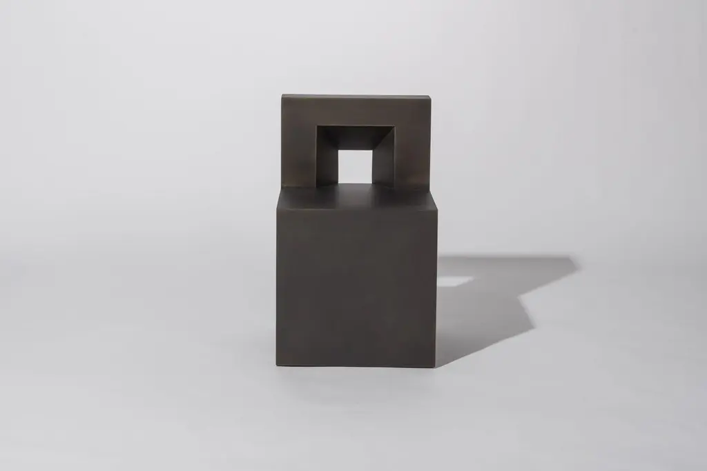 The GV chair by Jonathan Nesci is fully set on a three-dimensional grid based on the golden ratio and was a precedent of Jonathan's Golden Variation series. Produced in patinated bronze2013Edition of 8 + 2 Artist's ProofsMeasures: 17½ W, 17½ D x 28¼ H in.